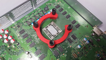 Este kit de montaje está diseñado para permitir la instalación de un bloque de refrigeración líquida Thermaltake "Water 3.0 Performer C" en una placa base Xbox One. El kit consta de un soporte y una placa posterior que, en conjunto, garantizan un montaje estable y preciso del cabezal de refrigeración líquida.