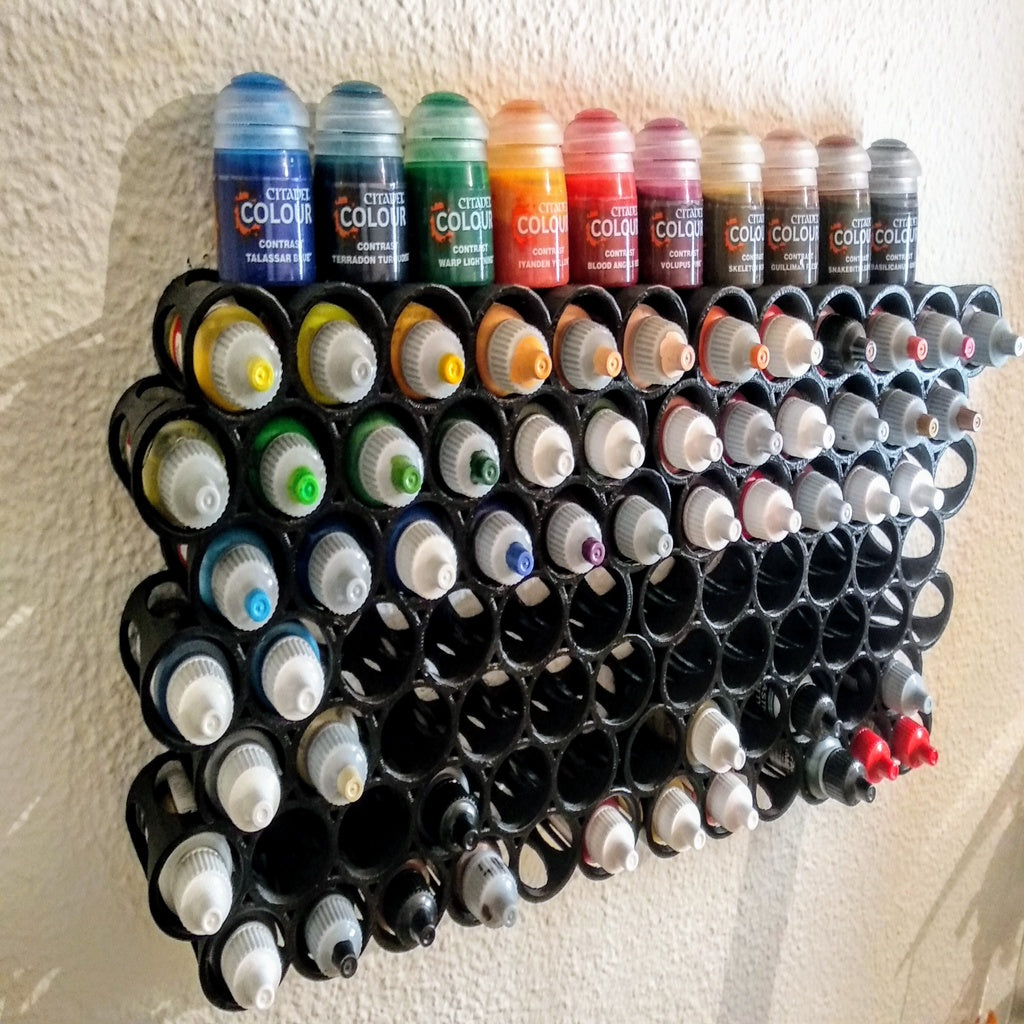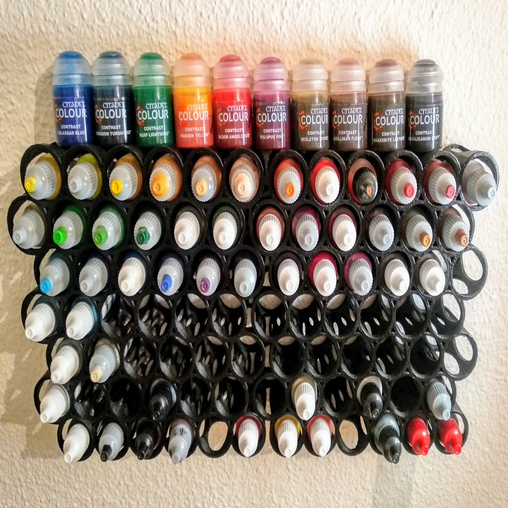 Soporte de pared para frascos pequeños de pintura como los frascos de Vallejo, Scale75 o Army Painter.