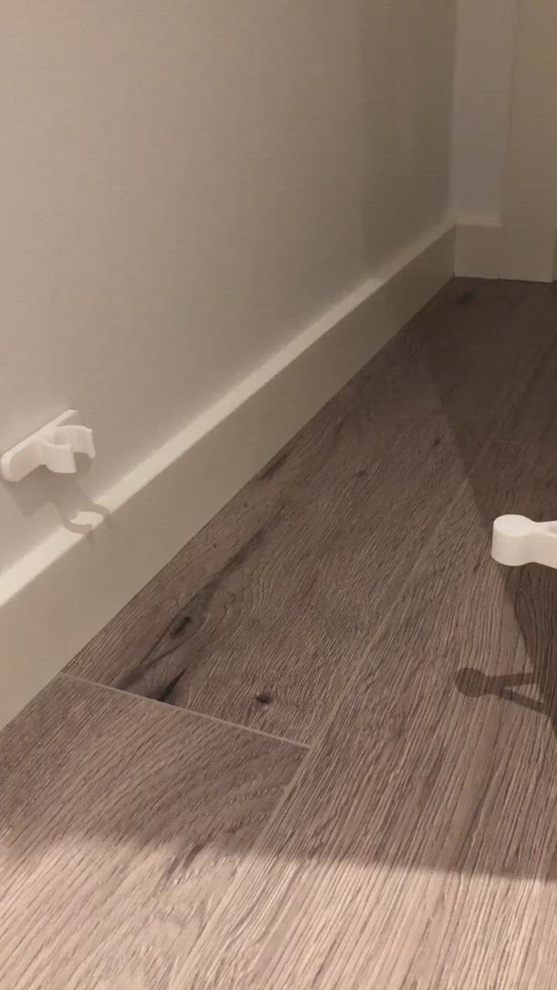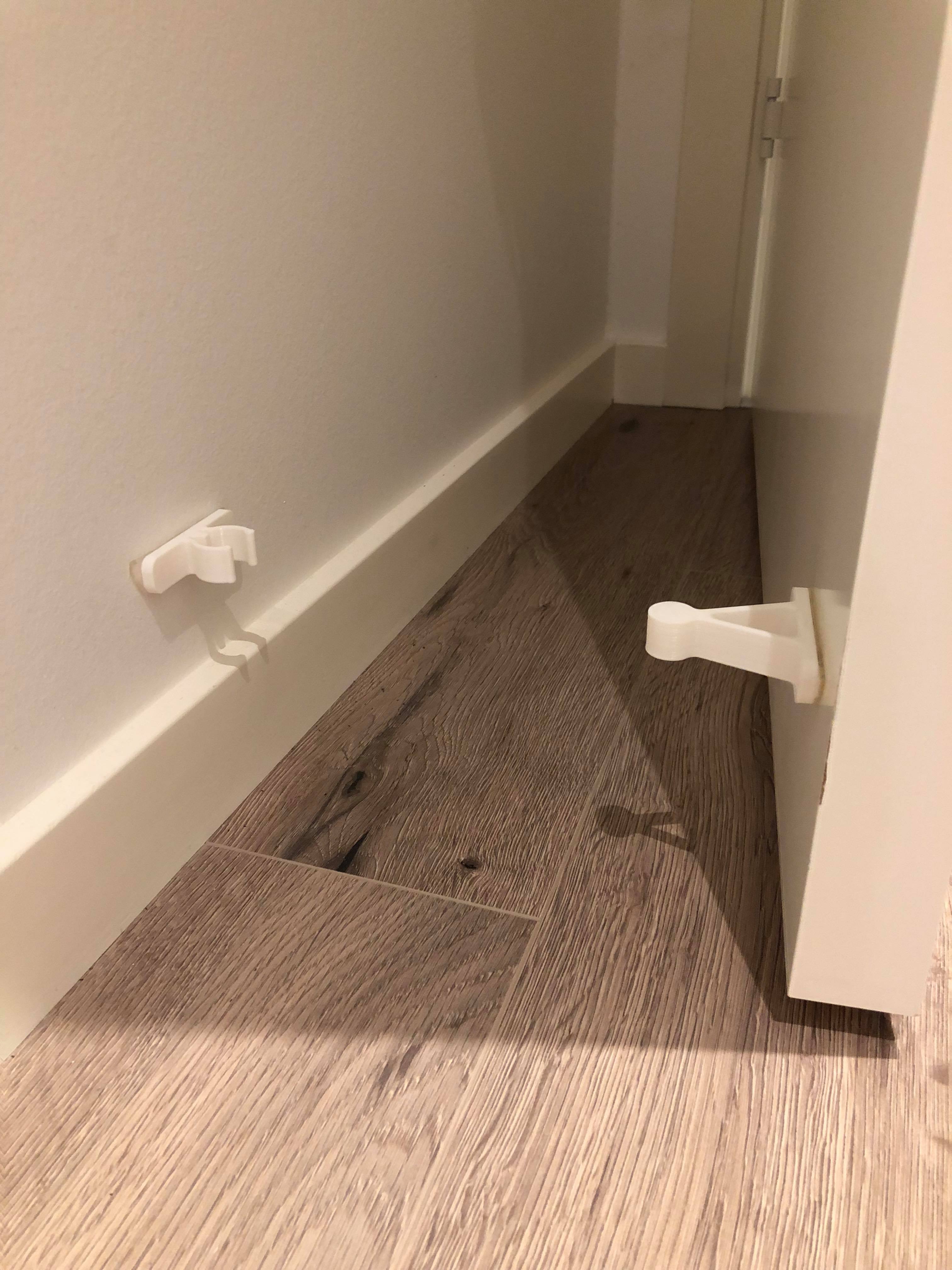 Se pega a la puerta y a la pared con cinta adhesiva de doble cara.