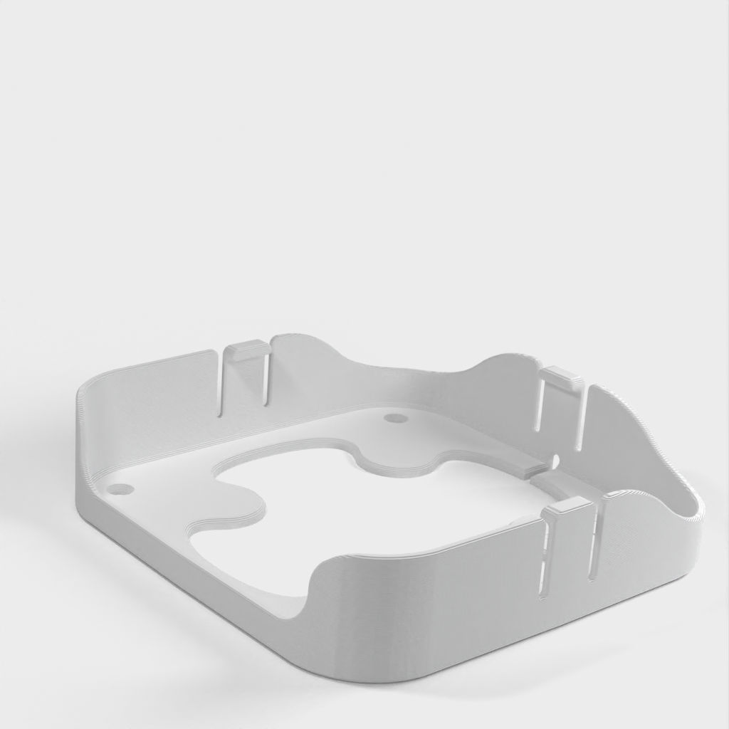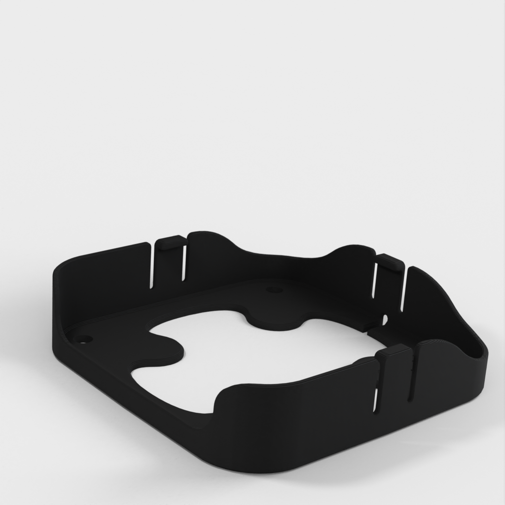 Un soporte de pared para el router móvil Netgear Nighthawk M5 5G. El soporte de pared es muy robusto y tiene mucho espacio en la parte inferior para conectar USB-C, Ethernet y cables de antena.