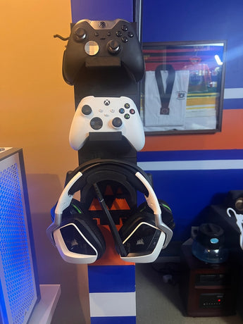 Organiza tu área de juegos con este soporte de pared para mando de Xbox inteligente y funcional, diseñado para mantener organizados tanto tu mando de Xbox One como tus auriculares para juegos. Este soporte de pared modular te permite personalizar tu solución de almacenamiento a la vez que libera un valioso espacio en tu escritorio. Garantiza que tu equipo esté siempre a mano cuando vayas a jugar y, al mismo tiempo, está protegido cuando no está en uso.
