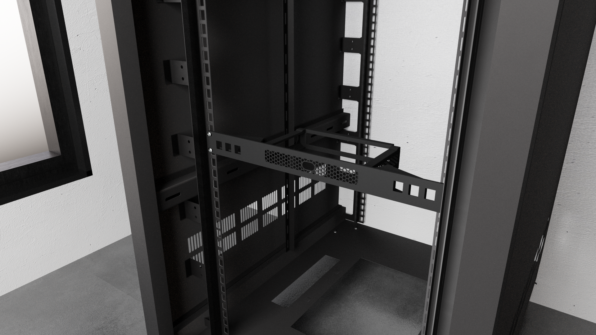 - Se adapta a los sistemas de rack estándar de 19 pulgadas con ubicación centralizada.