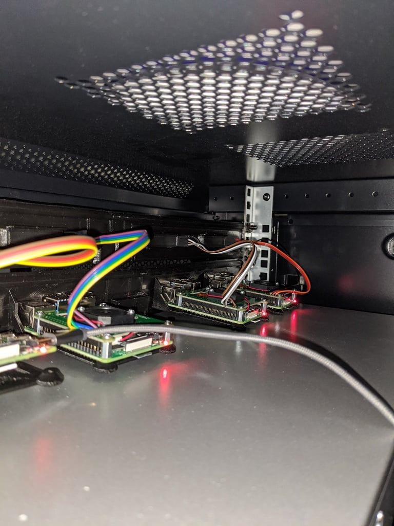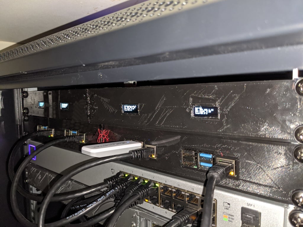 El soporte está dividido en dos partes para adaptarse a tu impresora y tiene soportes adicionales para las Pi. Este Quad Raspberry Pi Rack Mount funciona a la perfección tanto con los sombreros PoE oficiales para alimentación como con las conexiones USB. Los tornillos que vienen con el sombrero de anillo pueden ser un poco cortos, por lo que puede ser necesario perforar los agujeros inferiores para atornillarlos en los espaciadores.