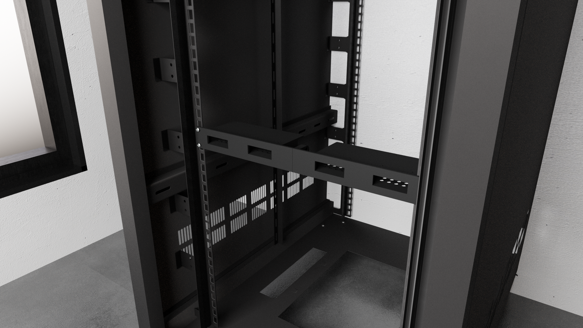 - Se monta en el propio gabinete del rack con tornillos M5 estándar y tuercas hexagonales.