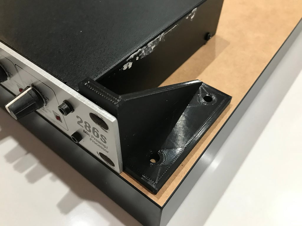 El soporte de montaje en rack 1U debajo del escritorio está diseñado específicamente para montar un DBX 286s 1U de 19" debajo de un escritorio. Este soporte duradero permite un fácil montaje y añade un aspecto organizado a la oficina o al estudio. El producto requiere tornillos de máquina M4.16mm para asegurar la unidad 1U al soporte y tornillos para madera estándar para fijarlo al escritorio/superficie (no incluidos).
