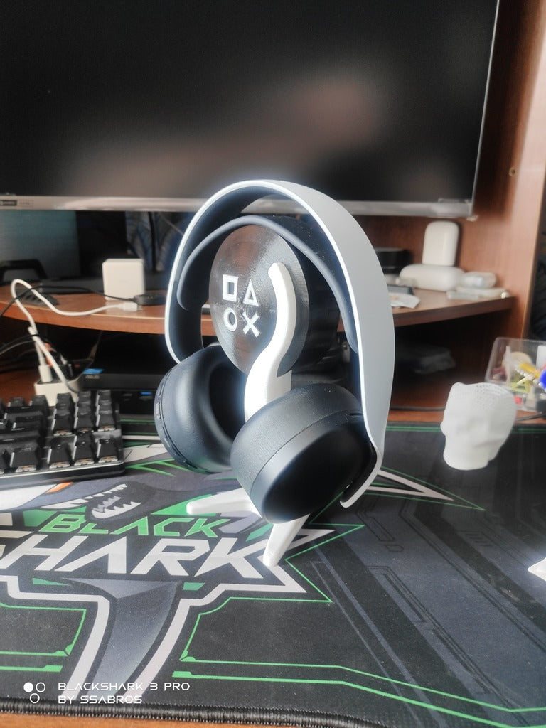 Este elegante soporte está diseñado específicamente para sus auriculares Sony PlayStation Pulse 3D y ofrece una solución de almacenamiento ideal. Con símbolos de PlayStation integrados, el soporte agrega un toque único y elegante a su configuración de juego, al mismo tiempo que mantiene sus auriculares organizados y de fácil acceso. Como un práctico soporte para auriculares, ayuda a mantener la condición de sus auriculares protegiéndolos de daños y desgaste cuando no están en uso. Es una solución funcional y estética que mantiene su escritorio ordenado y su equipo de juego en óptimas condiciones.