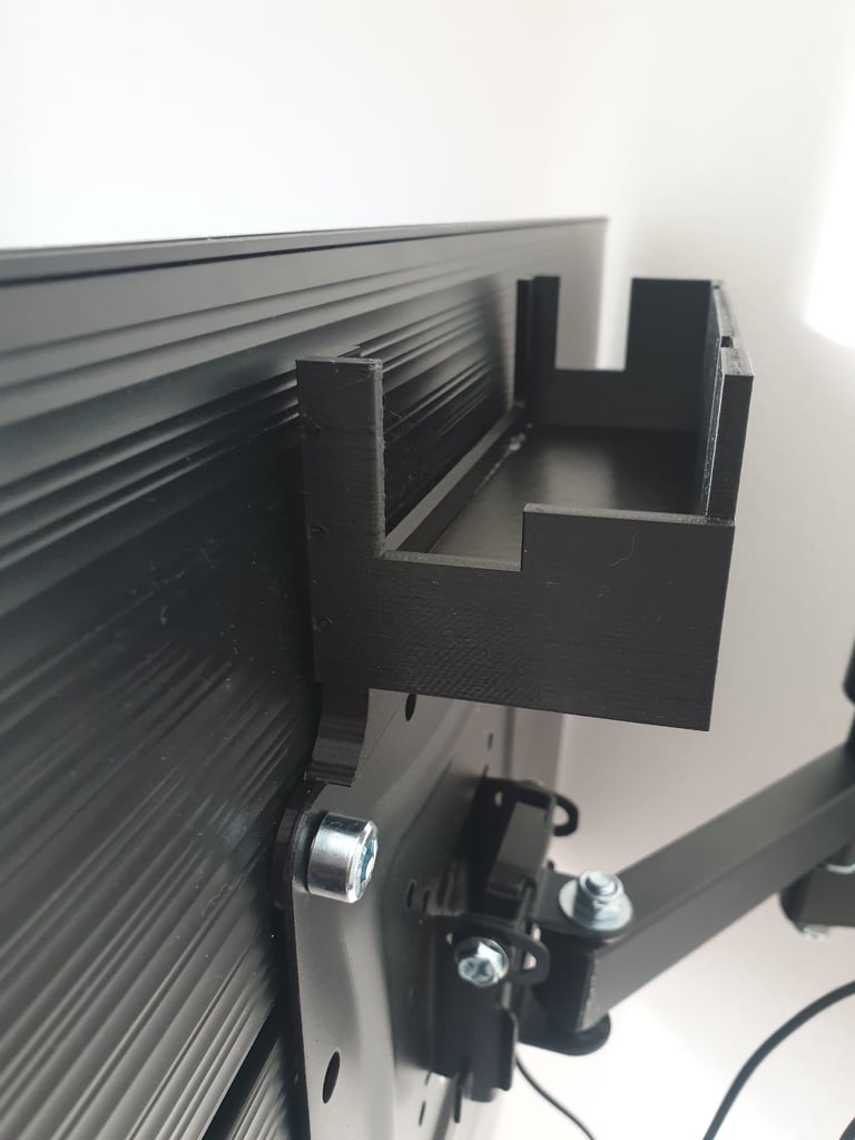 - Permite el montaje de ahorro de espacio detrás de un televisor montado en la pared.