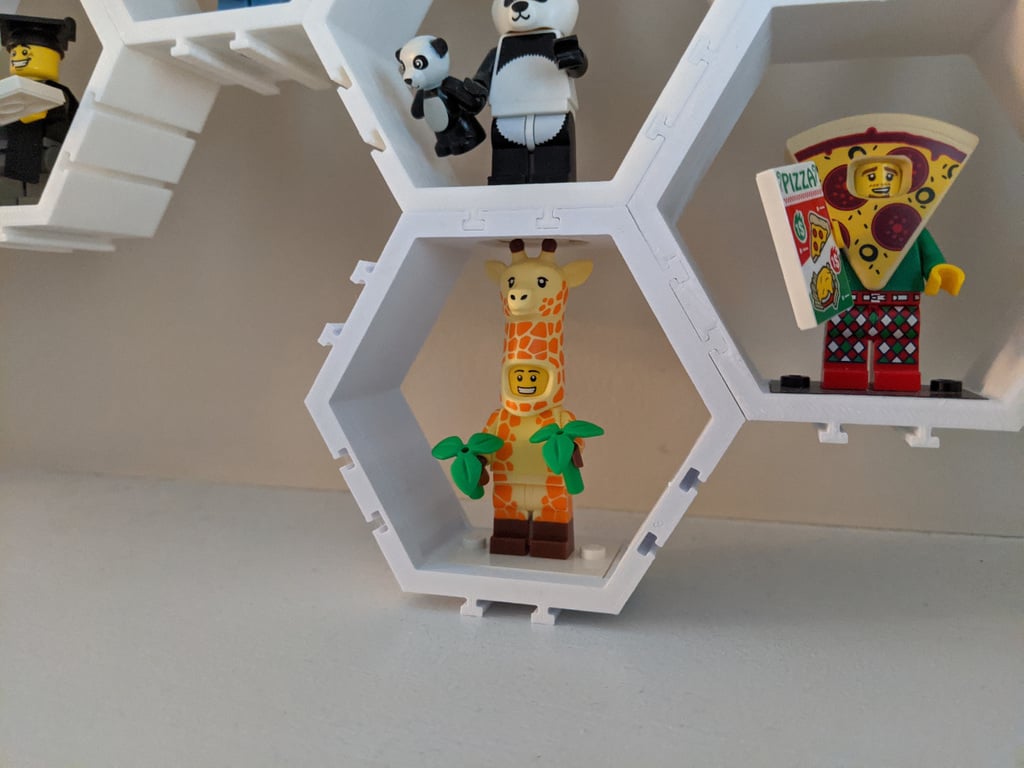 Presente sus minifiguras con estilo utilizando este exclusivo sistema de exhibición hexagonal. Cada celda está diseñada para albergar una minifigura con una base de 4x3, lo que proporciona un ajuste perfecto y una estética optimizada. El sistema es versátil y se puede adaptar a diferentes estilos.