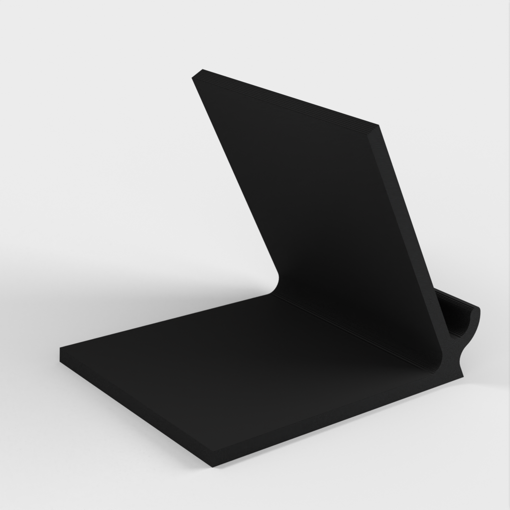 Un soporte de teléfono diseñado para ver vídeos cómodamente sin tener que sujetar el teléfono. El teléfono está pensado para colocarse horizontalmente en el soporte. El soporte B tiene un ángulo de 65 grados, mientras que el soporte C tiene un ángulo de 45 grados.