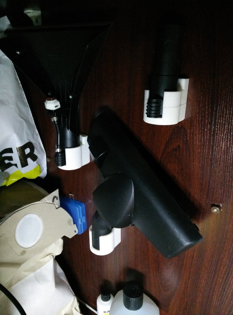 Este es un soporte de pared para boquillas para la aspiradora Kärcher. Está diseñado para mantener la boquilla segura en su lugar cuando no está en uso. Se adapta a boquillas con un diámetro exterior de 39 mm y un diámetro interior de 35 mm.