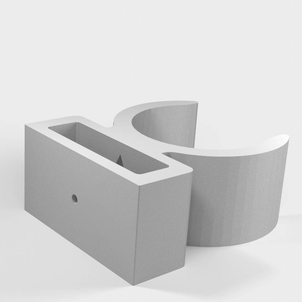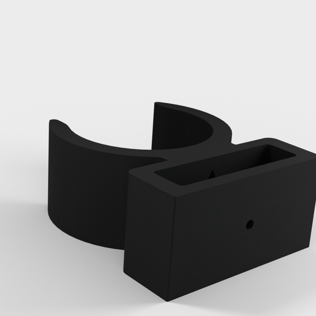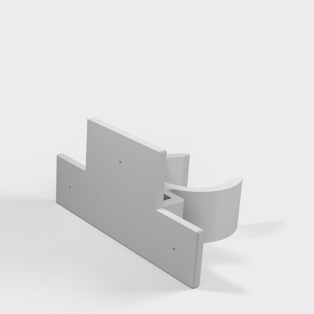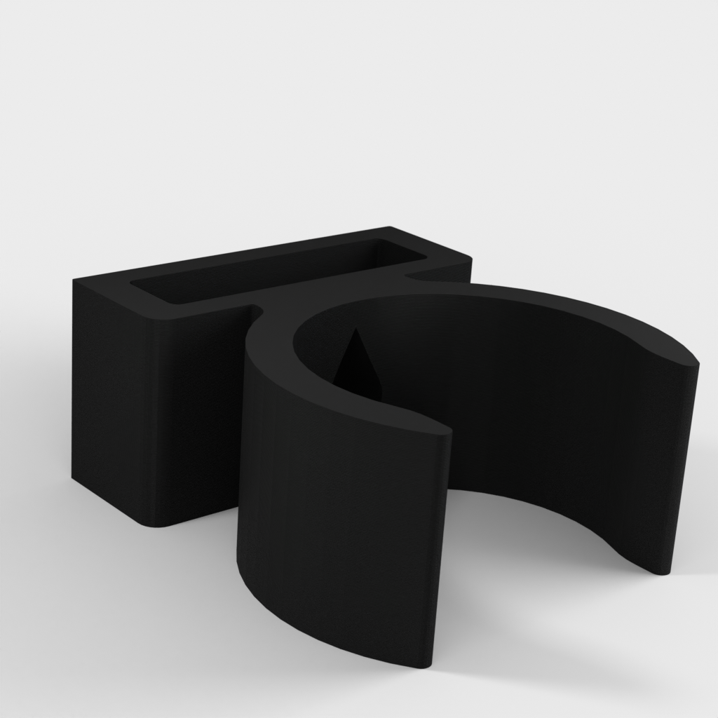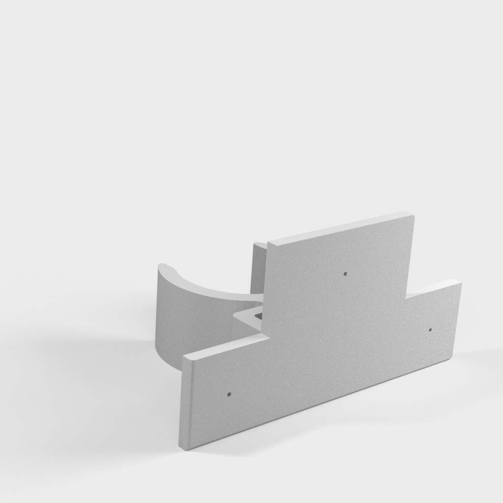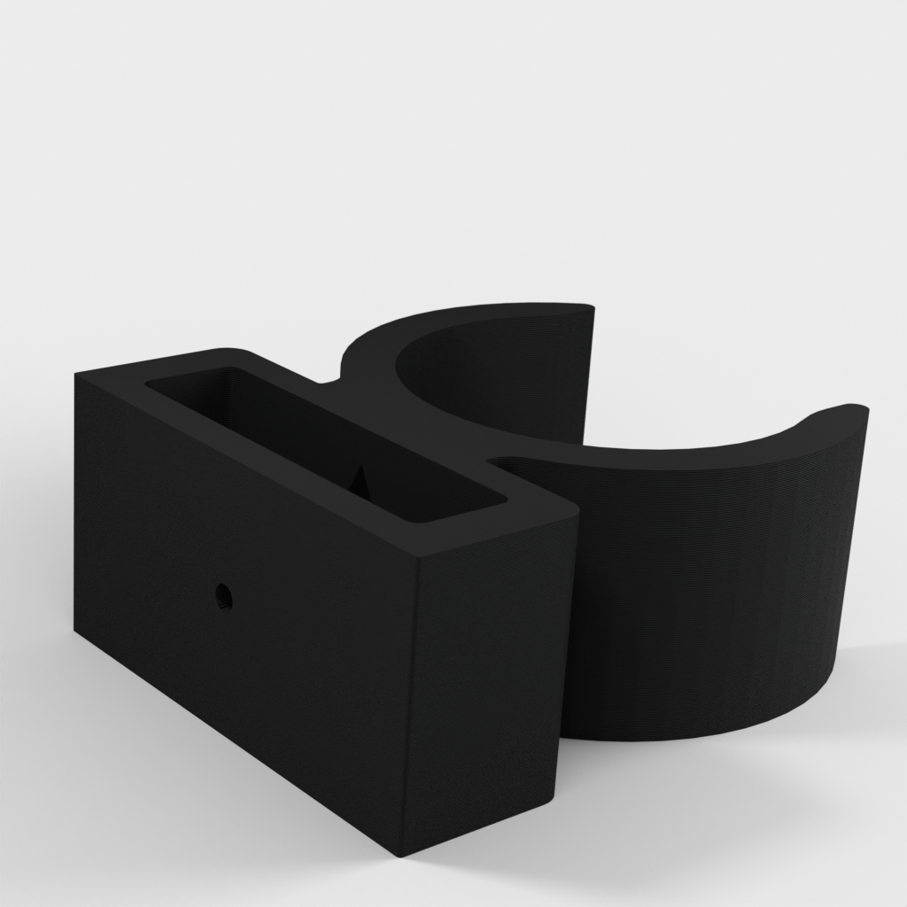 Soporte para tubos de aspiradora ETA Stellar. La parte inferior soporta las partes en forma de T del tubo y se recomienda fijarla con tornillos, ya que soporta la mayor parte del peso. La parte superior está diseñada para tubos con un diámetro de 32 mm, sin embargo, también se puede utilizar para piezas de 35 mm sin ningún problema. Esta parte se puede fijar con un tornillo o con cinta adhesiva de doble cara.