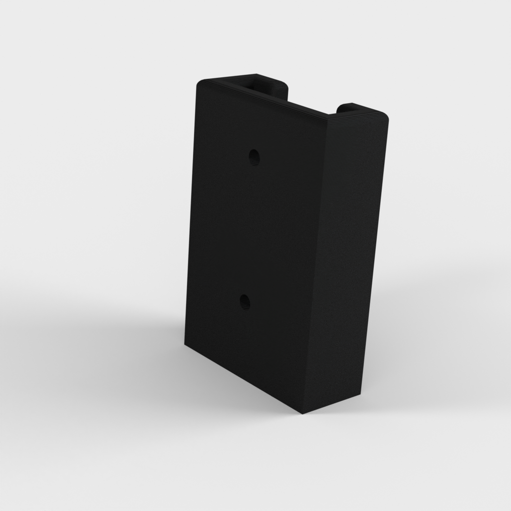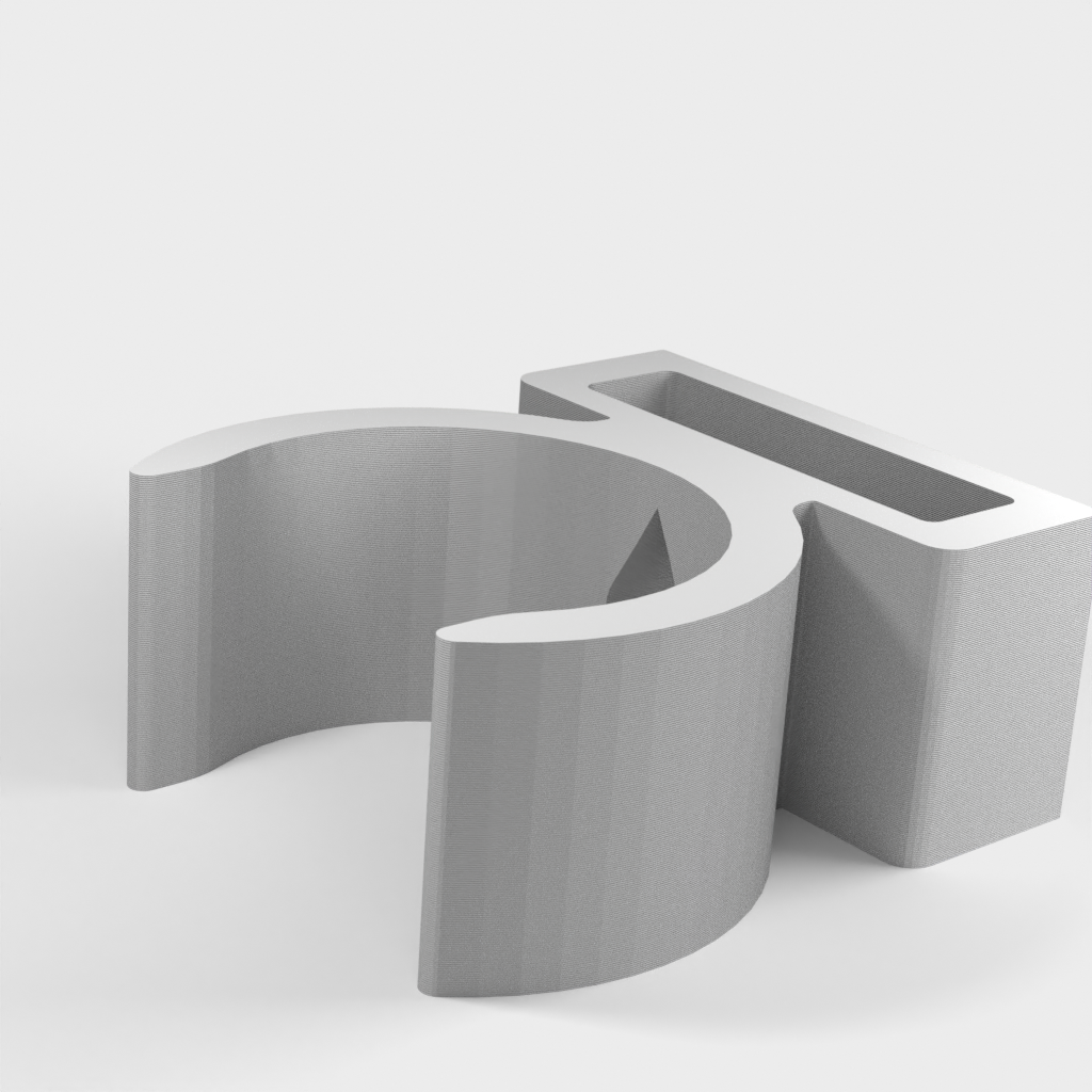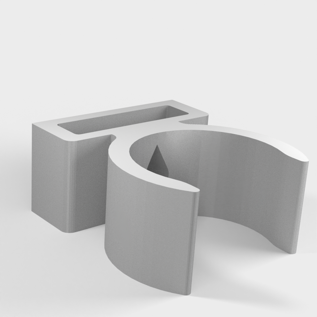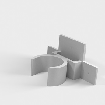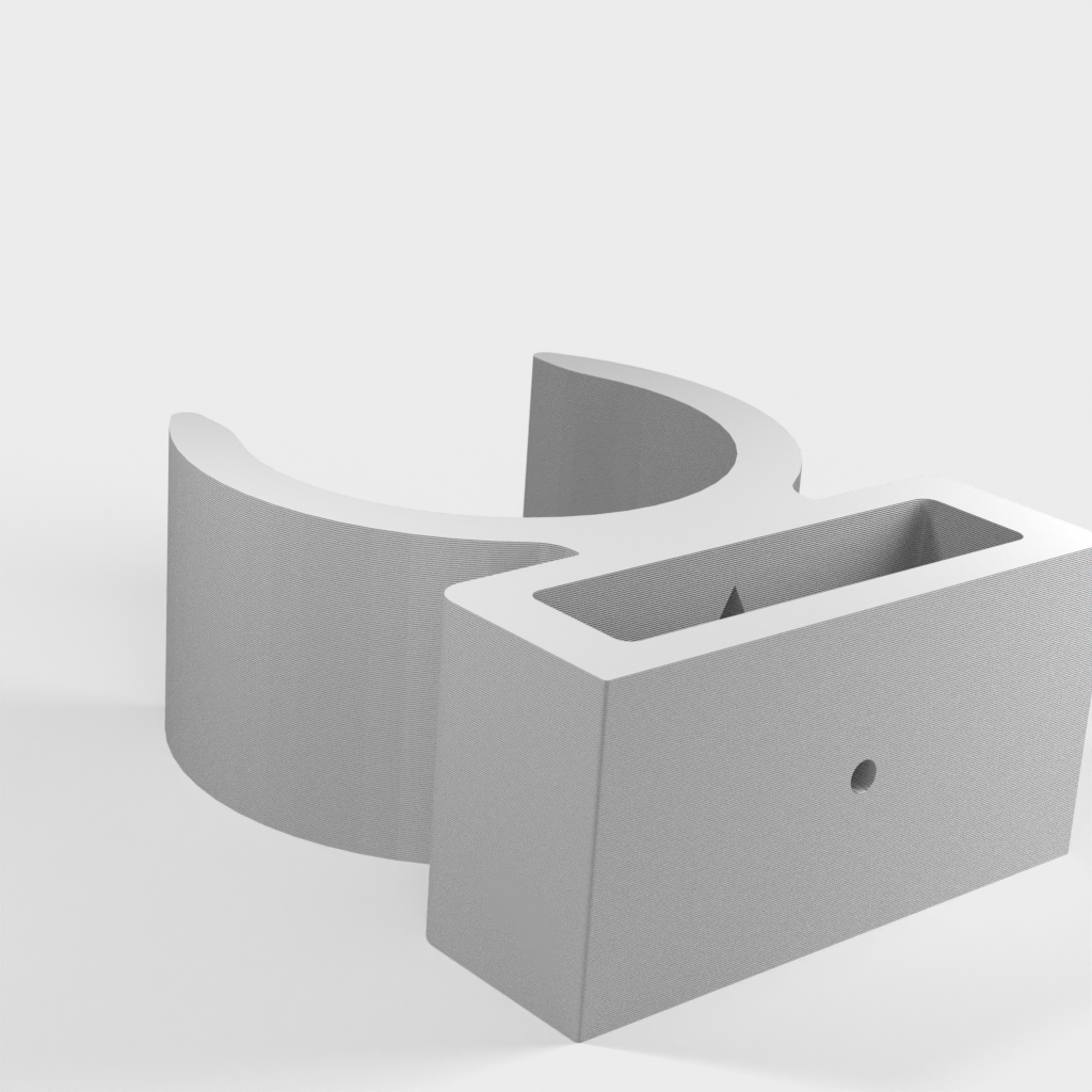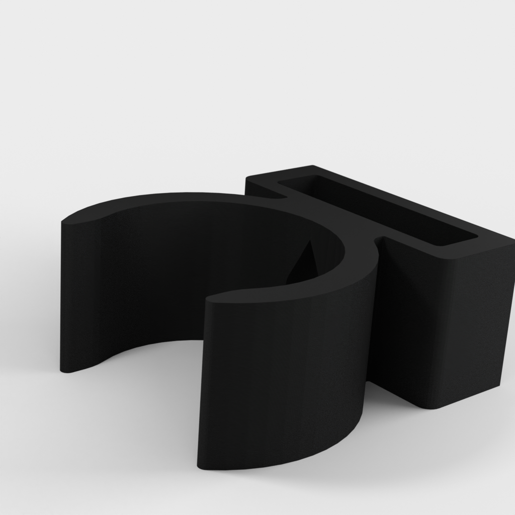 Soporte para tubos de aspiradora ETA Stellar. La parte inferior soporta las partes en forma de T del tubo y se recomienda fijarla con tornillos, ya que soporta la mayor parte del peso. La parte superior está diseñada para tubos con un diámetro de 32 mm, sin embargo, también se puede utilizar para piezas de 35 mm sin ningún problema. Esta parte se puede fijar con un tornillo o con cinta adhesiva de doble cara.