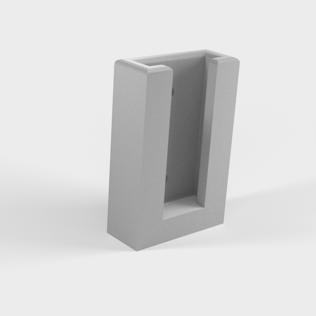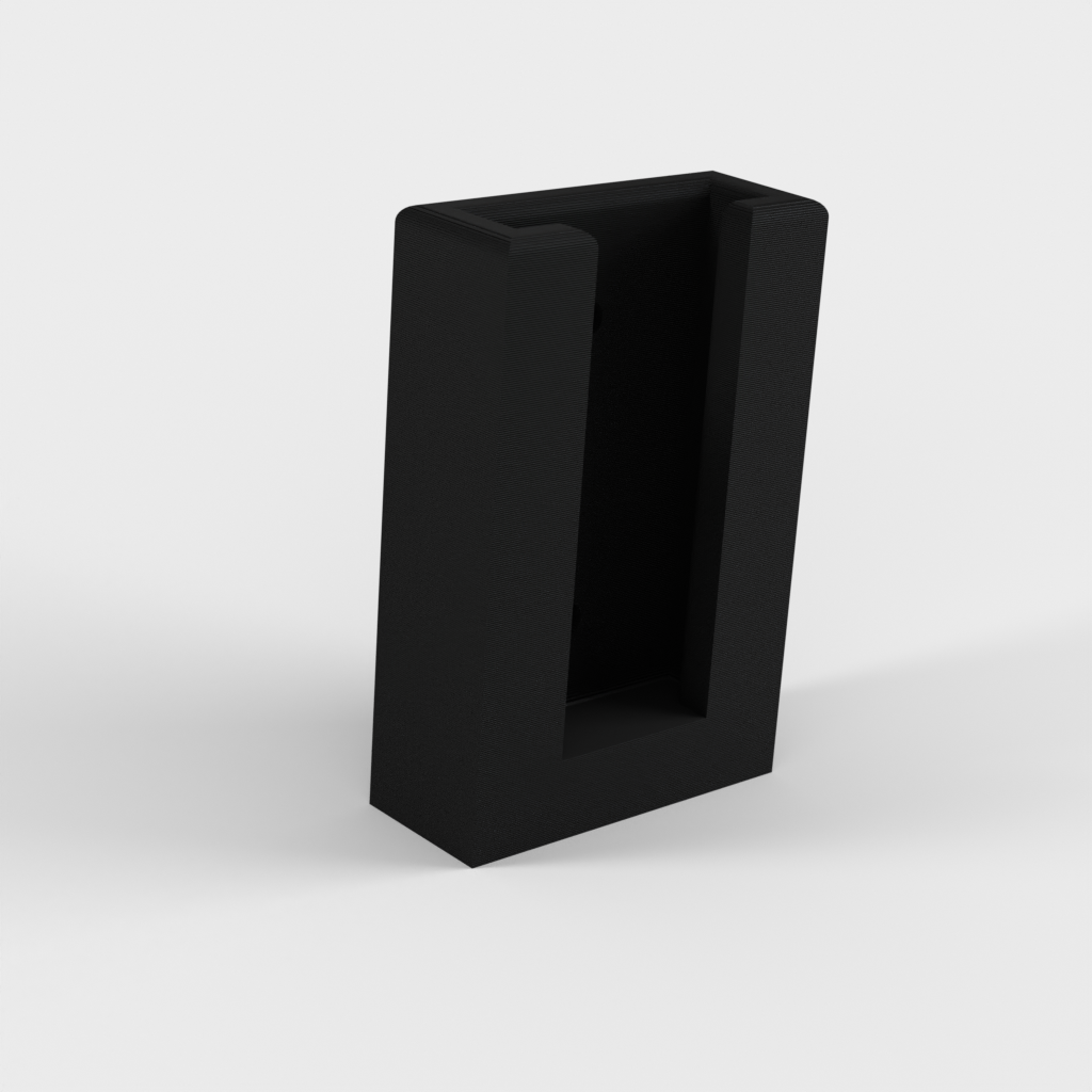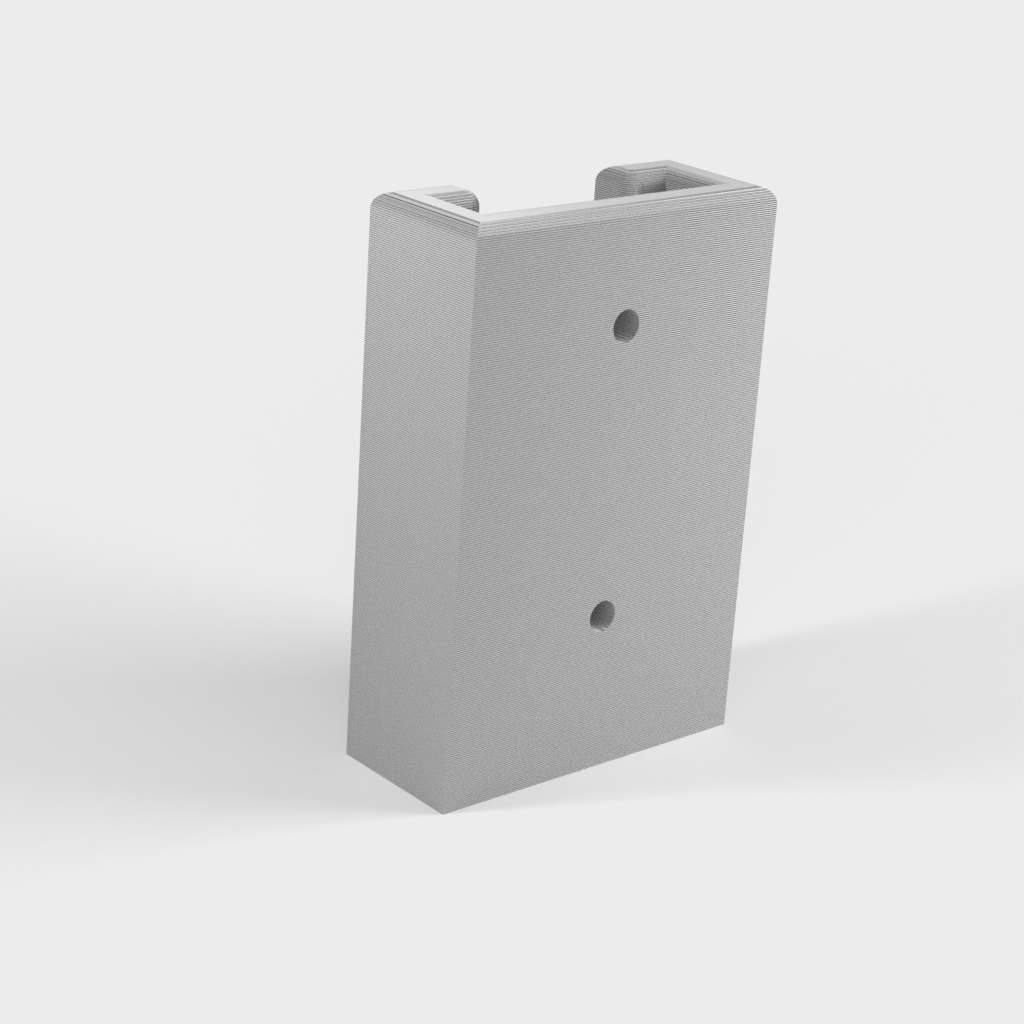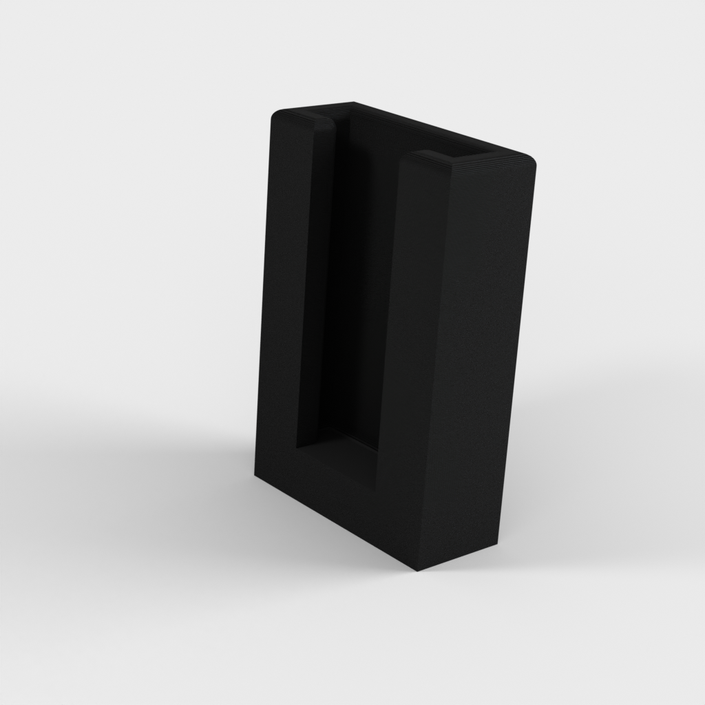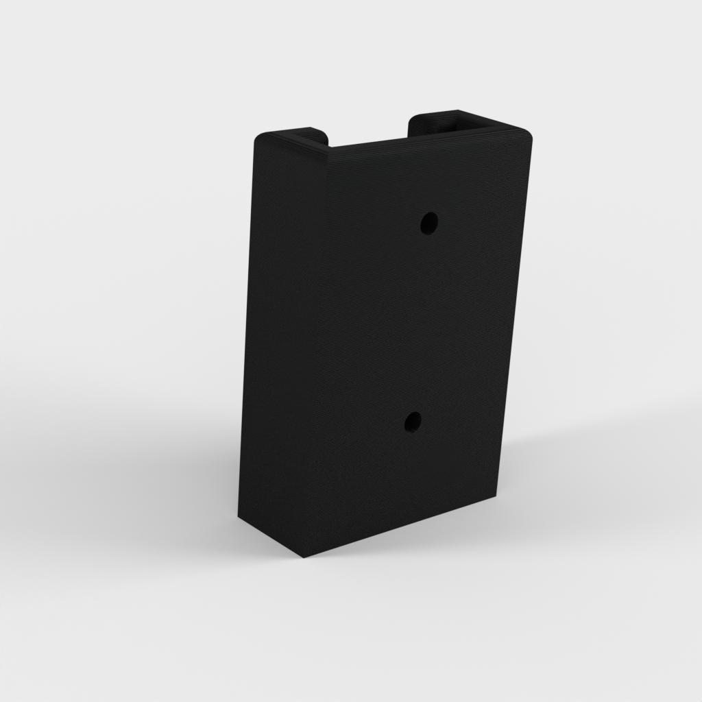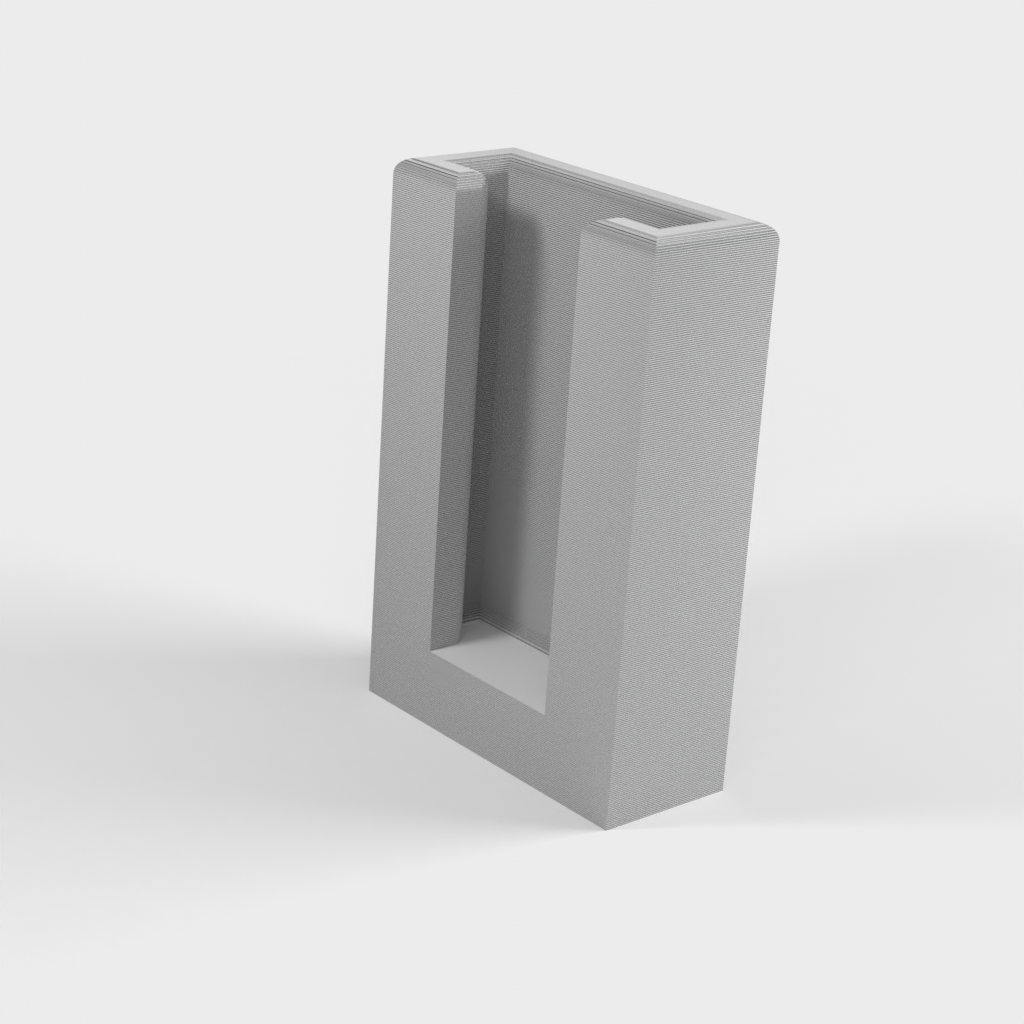 Soporte para tubos de aspiradora ETA Stellar. La parte inferior soporta las partes en forma de T del tubo y se recomienda fijarla con tornillos, ya que soporta la mayor parte del peso. La parte superior está diseñada para tubos con un diámetro de 32 mm, sin embargo, también se puede utilizar para piezas de 35 mm sin ningún problema. Esta parte se puede fijar con un tornillo o con cinta adhesiva de doble cara.