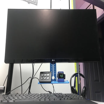El estante es ideal para realizar un seguimiento de su cargador de Apple Watch, su Elgato Stream Deck Mini y su teléfono, pero también hay mucho espacio para bolígrafos, notas post-it y otras cosas pequeñas. Los orificios integrados también garantizan una gestión eficaz de los cables, de modo que sus cables se mantengan perfectamente fuera de la vista y eviten el desorden en el escritorio.