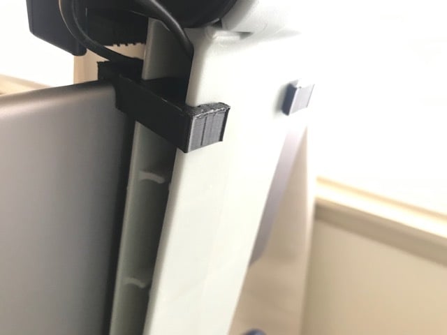 Soporte de montaje para iPad sencillo para una máquina de remo Concept2 Modelo D. Diseñado para el iPad Pro de 9,7" más antiguo, pero se puede ajustar para otras tabletas o teléfonos con diferentes grosores. La instalación implica colocar el clip en el brazo justo debajo del PM3/4/5 y luego colocar el iPad en el soporte y ajustar los clips superiores según sea necesario.