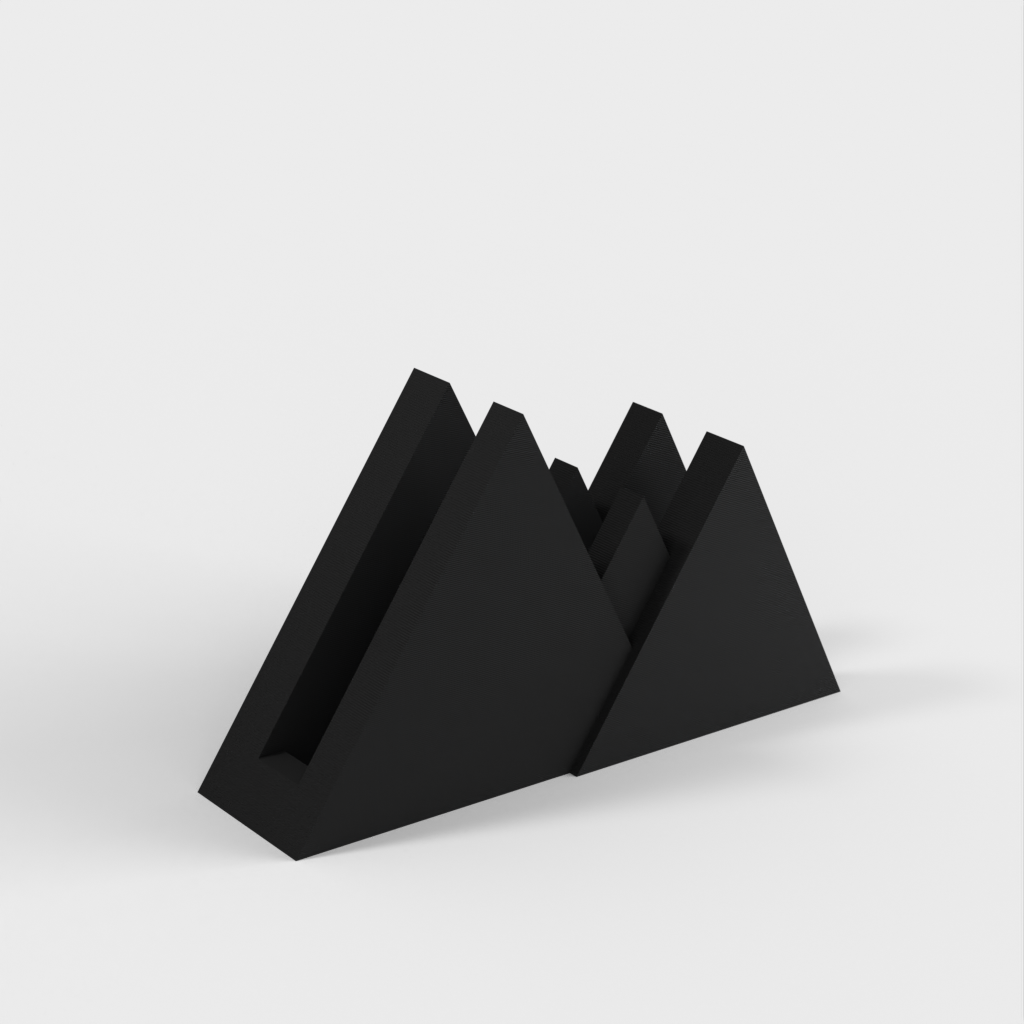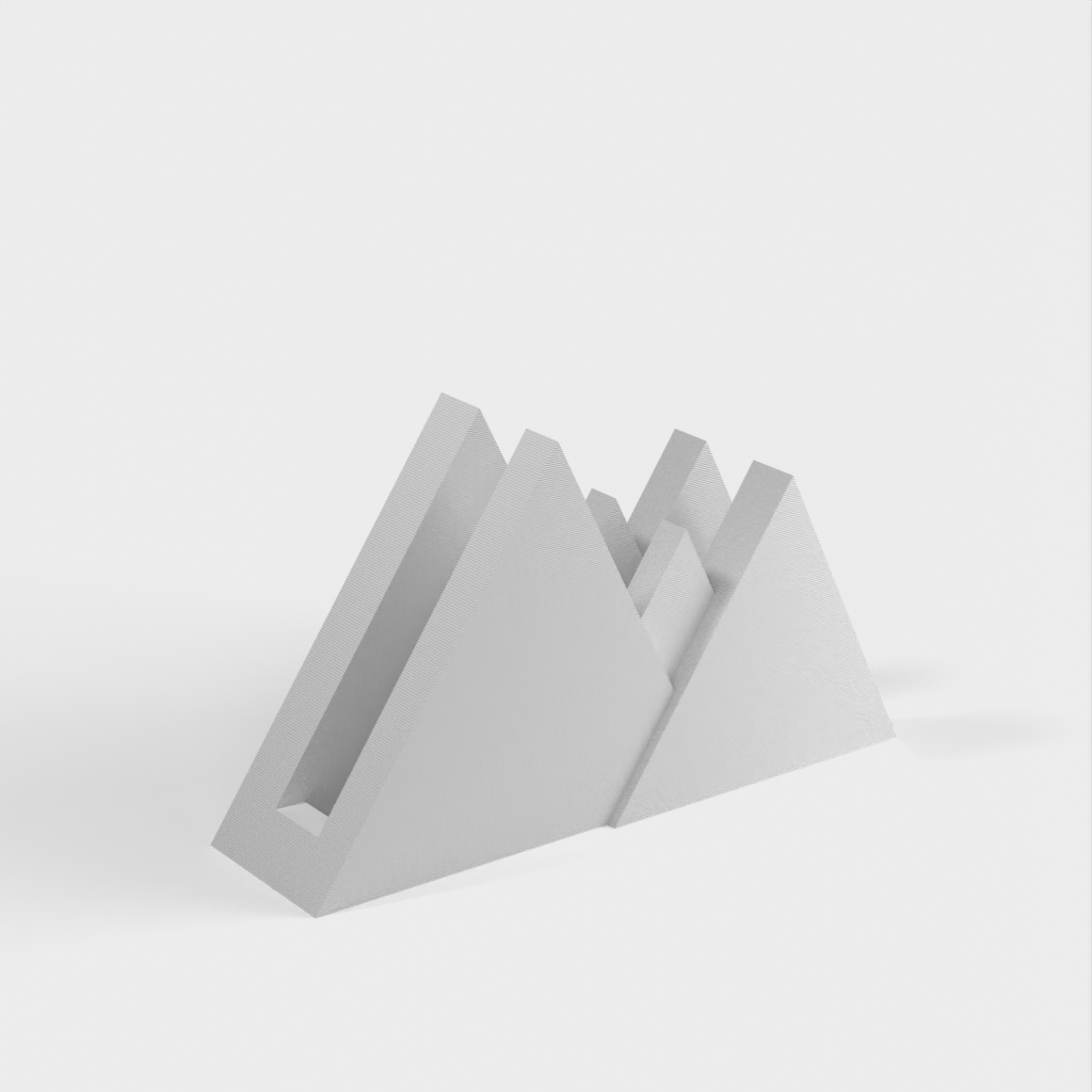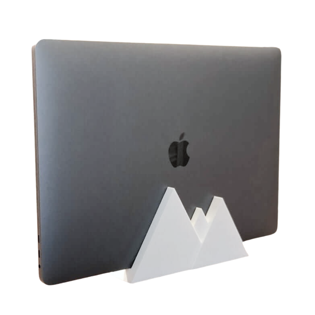 Un soporte vertical simple pero robusto para una Macbook Pro con un paisaje de montaña integrado. El orificio donde se asienta la Macbook tiene 1,62 cm de ancho y, por lo tanto, se adapta a la mayoría de los modelos.