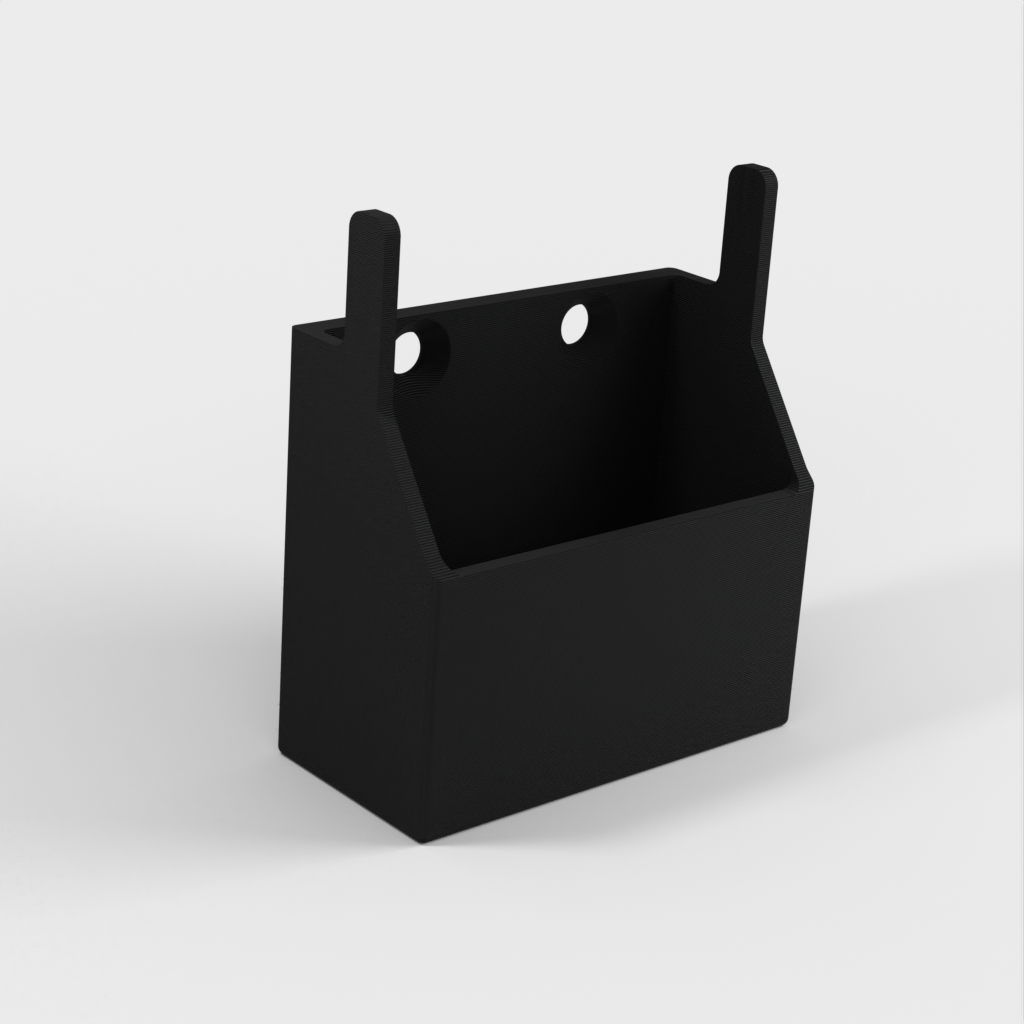 El soporte para mando a distancia es un montaje en pared práctico y robusto diseñado para mandos a distancia con un tamaño de 55x20 mm. La distancia entre tornillos es de 25 mm, lo que garantiza un montaje estable y seguro. Este soporte de pared es ideal para guardar de forma ordenada y organizada tus mandos a distancia.