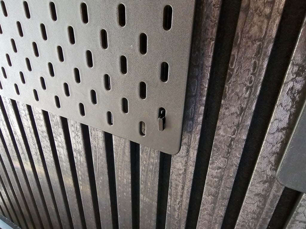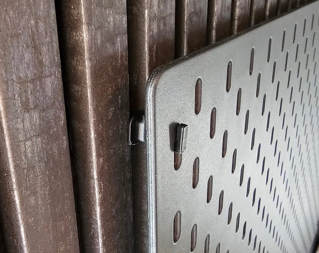 Este es un gancho hecho para montar planchas SKÅDIS de IKEA en paneles de madera acústica.