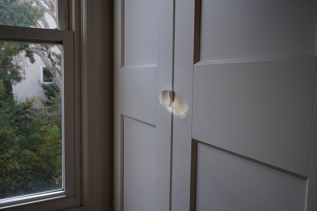 Nuestro montaje Ikea Pax tiene espejos en uno de los armarios, pero todas las opciones de tiradores eran de metal, ¡lo que podría romper el espejo! El diseño de la manija coincide con las manijas de metal que venían con las puertas de los armarios con espejos