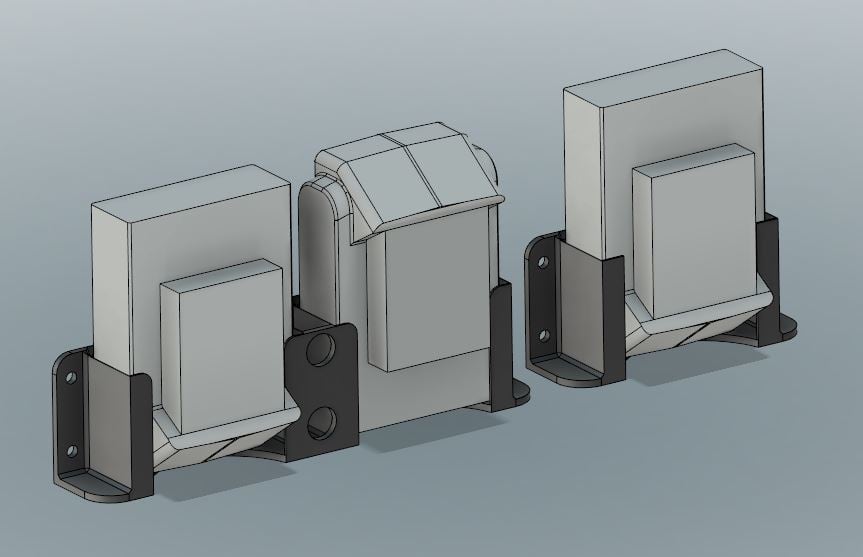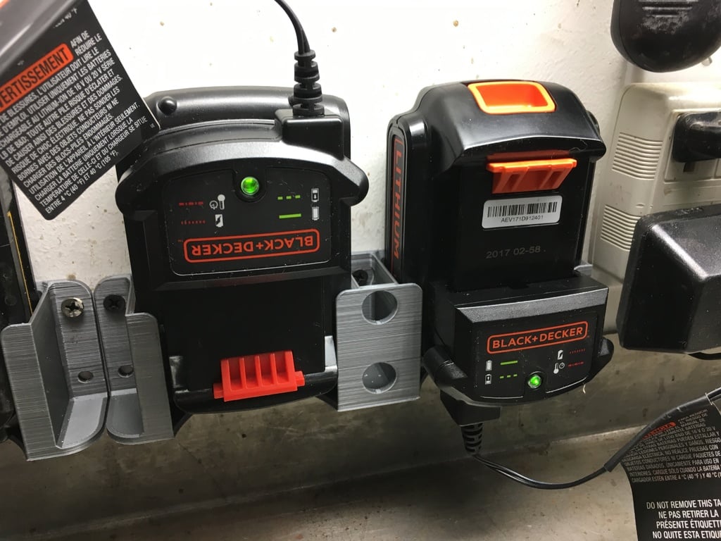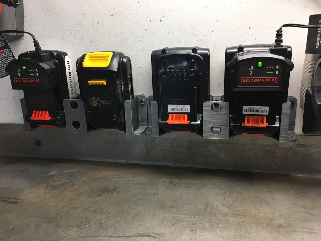 Dado que sólo están pensados para mantenerse en posición vertical con fines de carga y para tener en cuenta las tolerancias de la impresora, los soportes están diseñados para ser un poco descuidados. Yo no cargo las baterías DeWalt en los soportes, pero caben, así que también las mantengo fuera del camino.