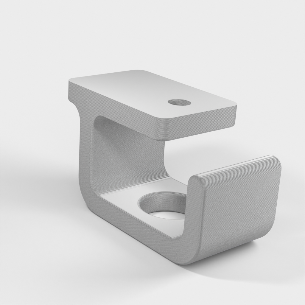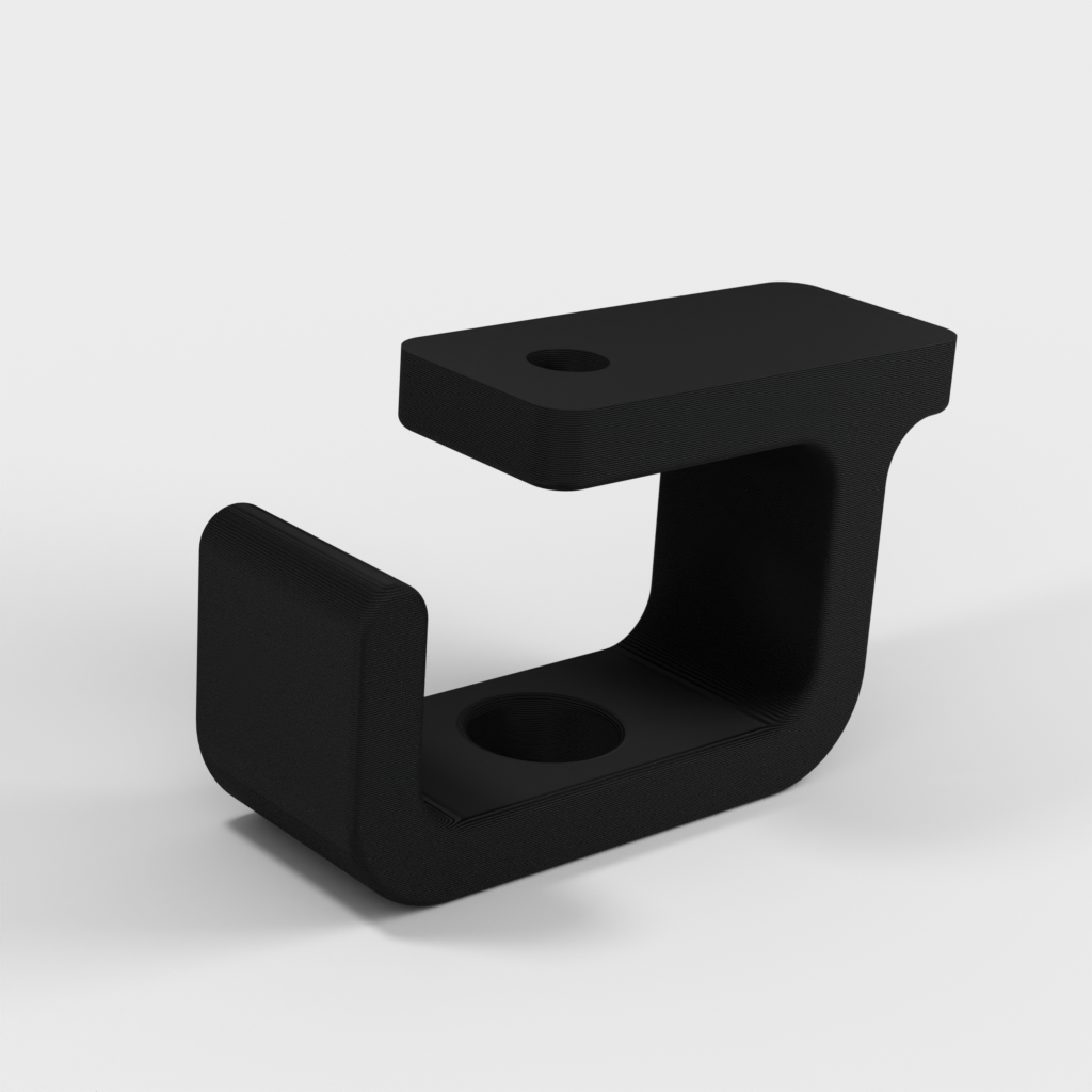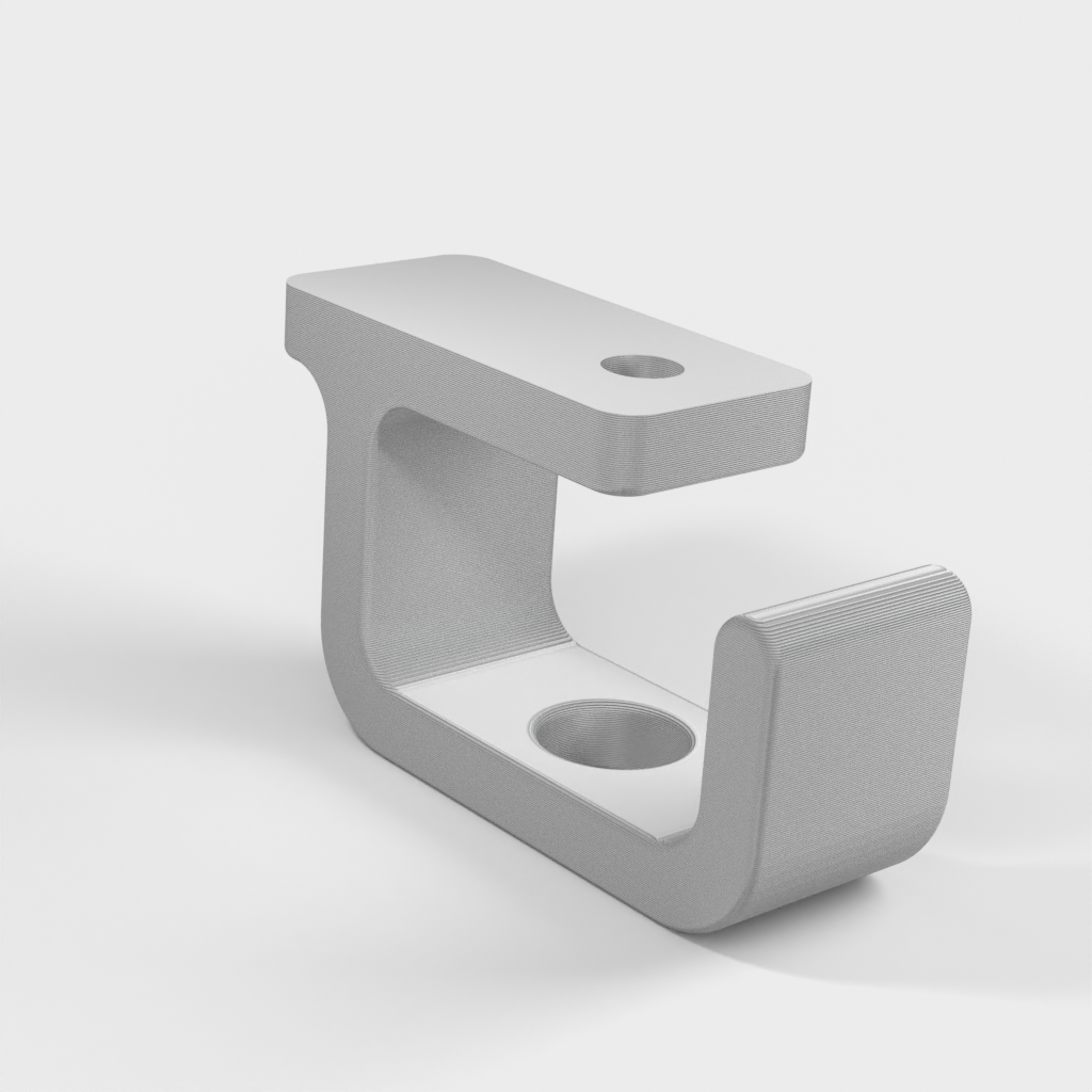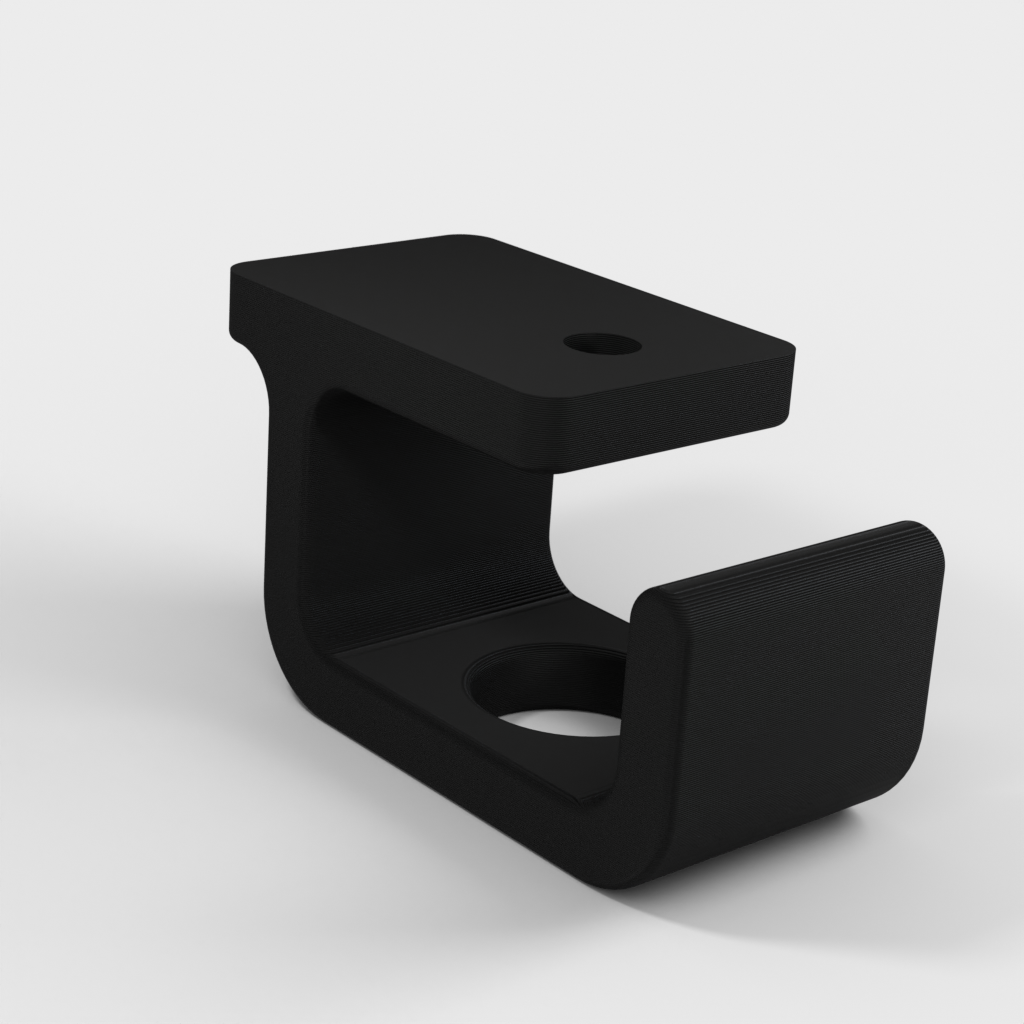 Este gancho de gestión de cables está diseñado para organizar cables con un diámetro de hasta 8 mm. El gancho se puede atornillar directamente a su estante IKEA Ivar utilizando un tornillo para madera de 3,5 x 16 mm con cabeza avellanada. Hay dos versiones del gancho disponibles: una versión normal que requiere un destornillador y una versión "perezosa" con un orificio más grande que permite utilizar un portabrocas estándar para destornillador inalámbrico.