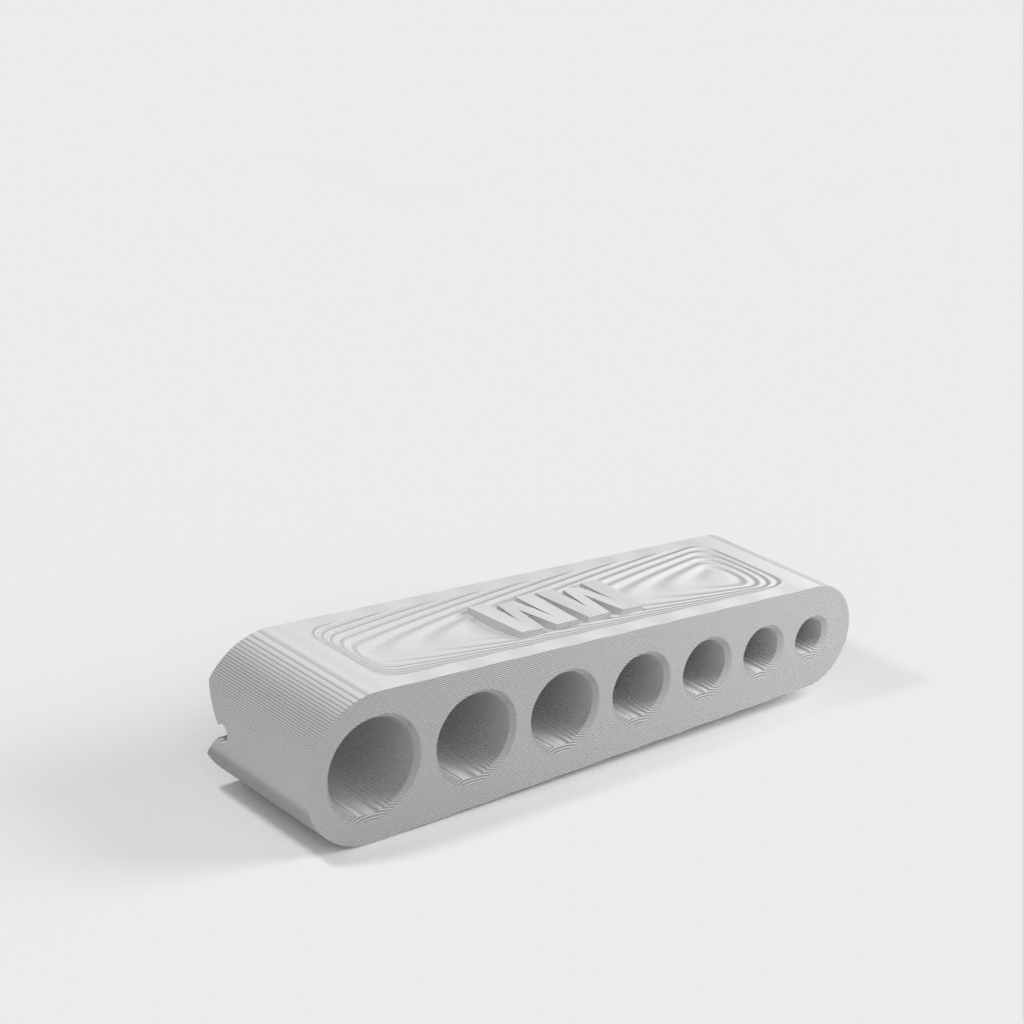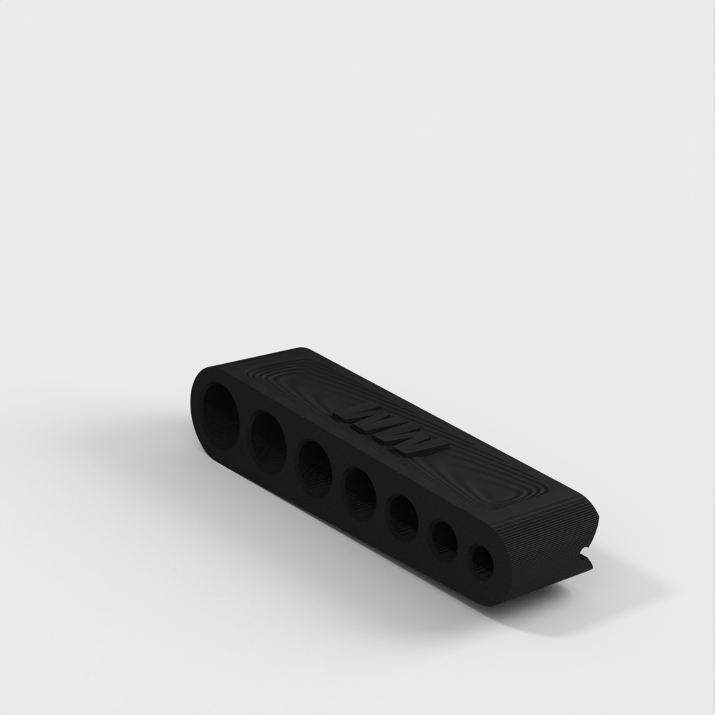 Práctica guía de taladrado que le garantiza obtener siempre un ángulo recto perfecto. La barra guía también incluye un recorte inteligente en la parte inferior que le permite taladrar en esquinas o cilindros.