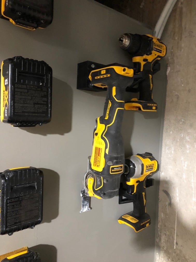 Soporte de pared diseñado específicamente para herramientas Dewalt de 20 V. Este soporte de pared es perfecto para taladros de impacto más pequeños y compatible con herramientas oscilantes Dewalt. Puede montar fácilmente el soporte en la pared con 4 tornillos para madera de 3", lo que facilita la organización y el almacenamiento de sus herramientas Dewalt.