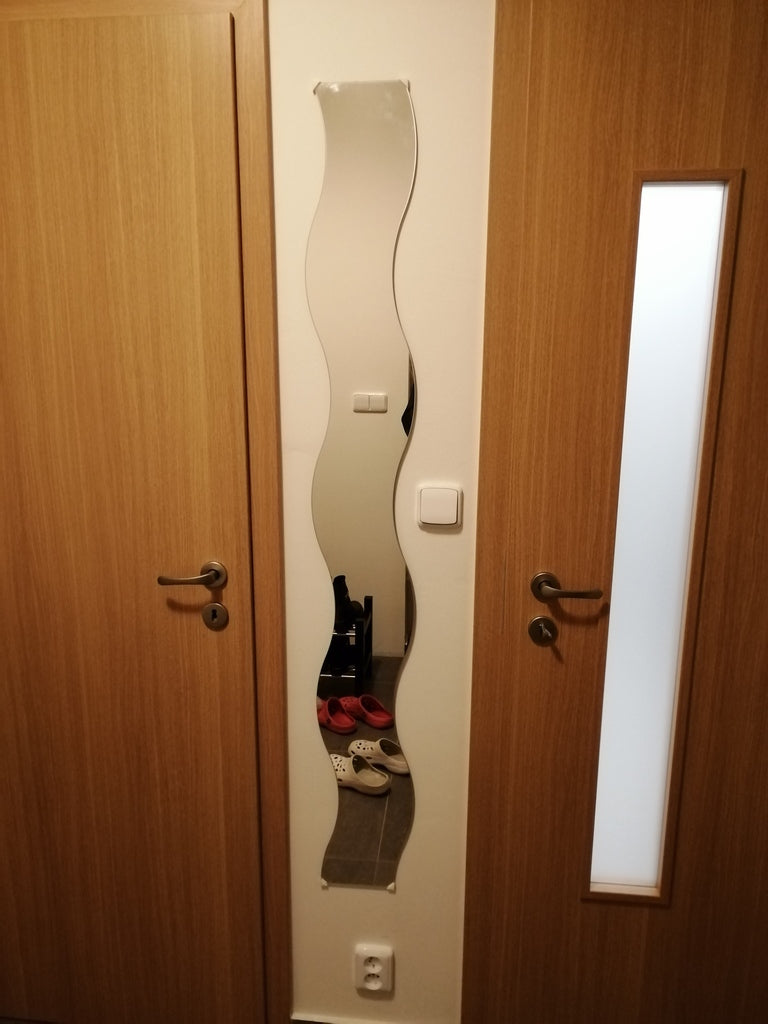 Se trata de un sencillo montaje en esquina para un espejo de 3 mm, plexiglás o similar. Es perfecto si tienes un espejo que debe pegarse a la pared, pero no quieres pegar nada directamente a la pared.
