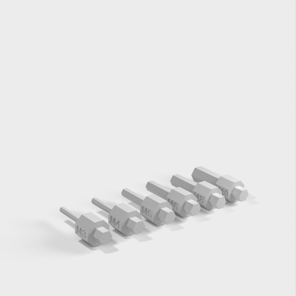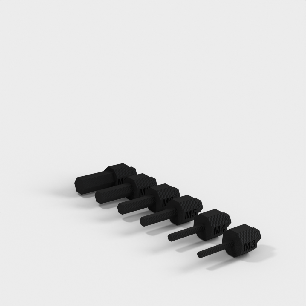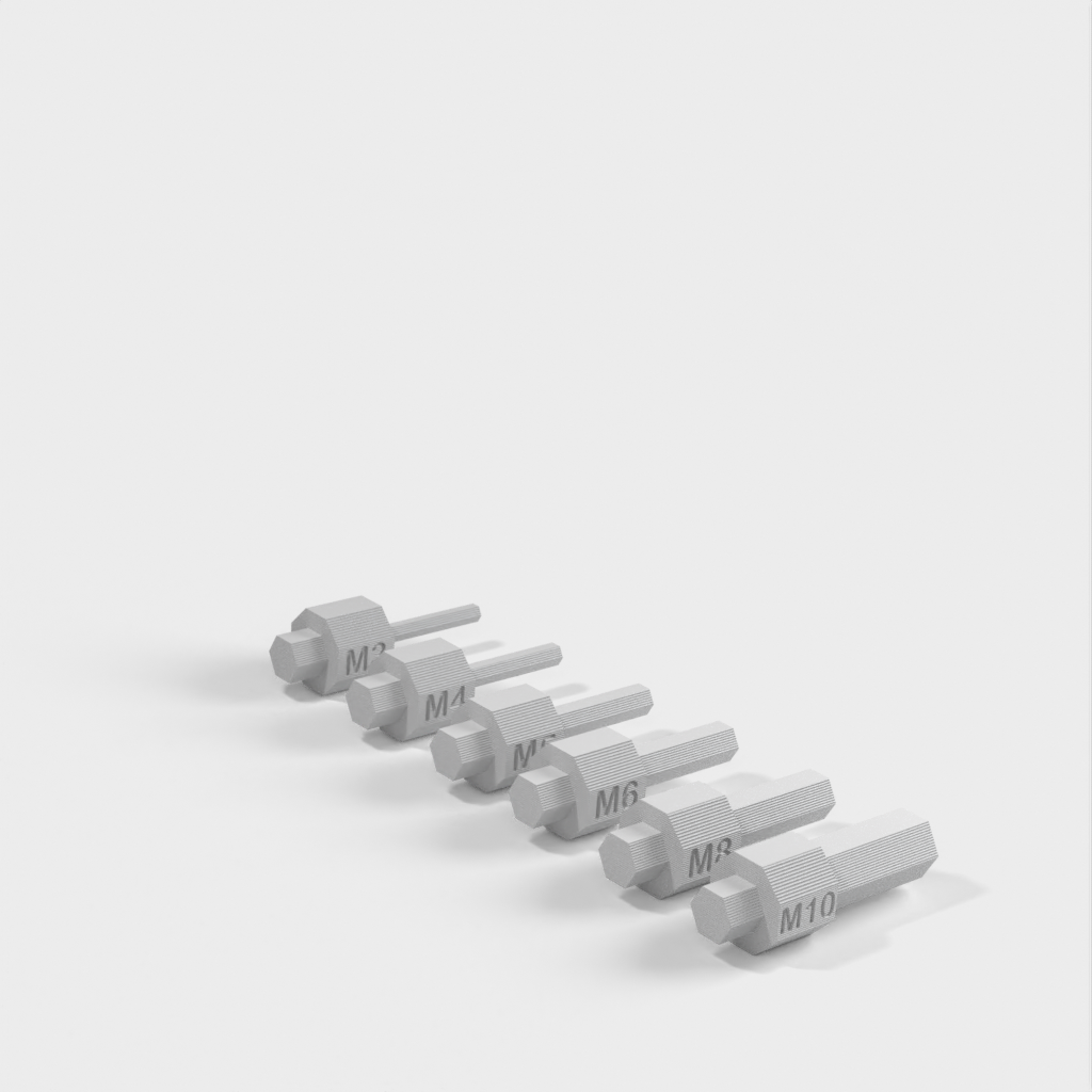 Juego de llaves Allen hexagonales, OMT², en tamaños métricos de M3 a M10. Este juego es compatible con cualquier portapuntas estándar y/o mango OMT². El juego contiene las 6 llaves Allen más utilizadas. Las ventajas de este juego son que es compacto, fácil de guardar y de utilizar. El juego es útil en muchas situaciones en las que pueda necesitar una llave Allen. Tenga en cuenta que este juego nunca sustituirá completamente a un juego de llaves Allen metálicas, pero puede resultar útil en algunos casos.