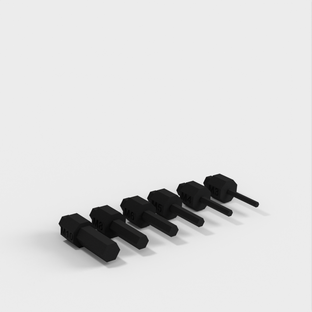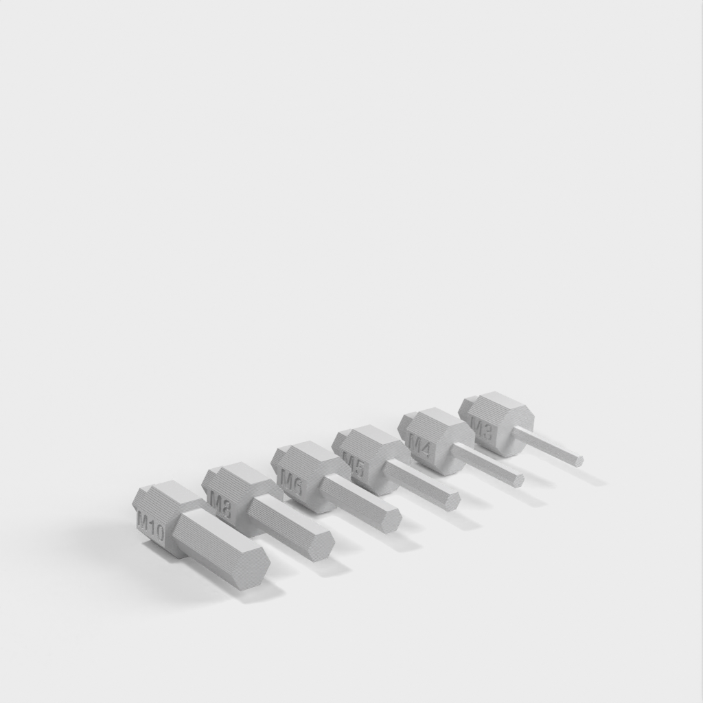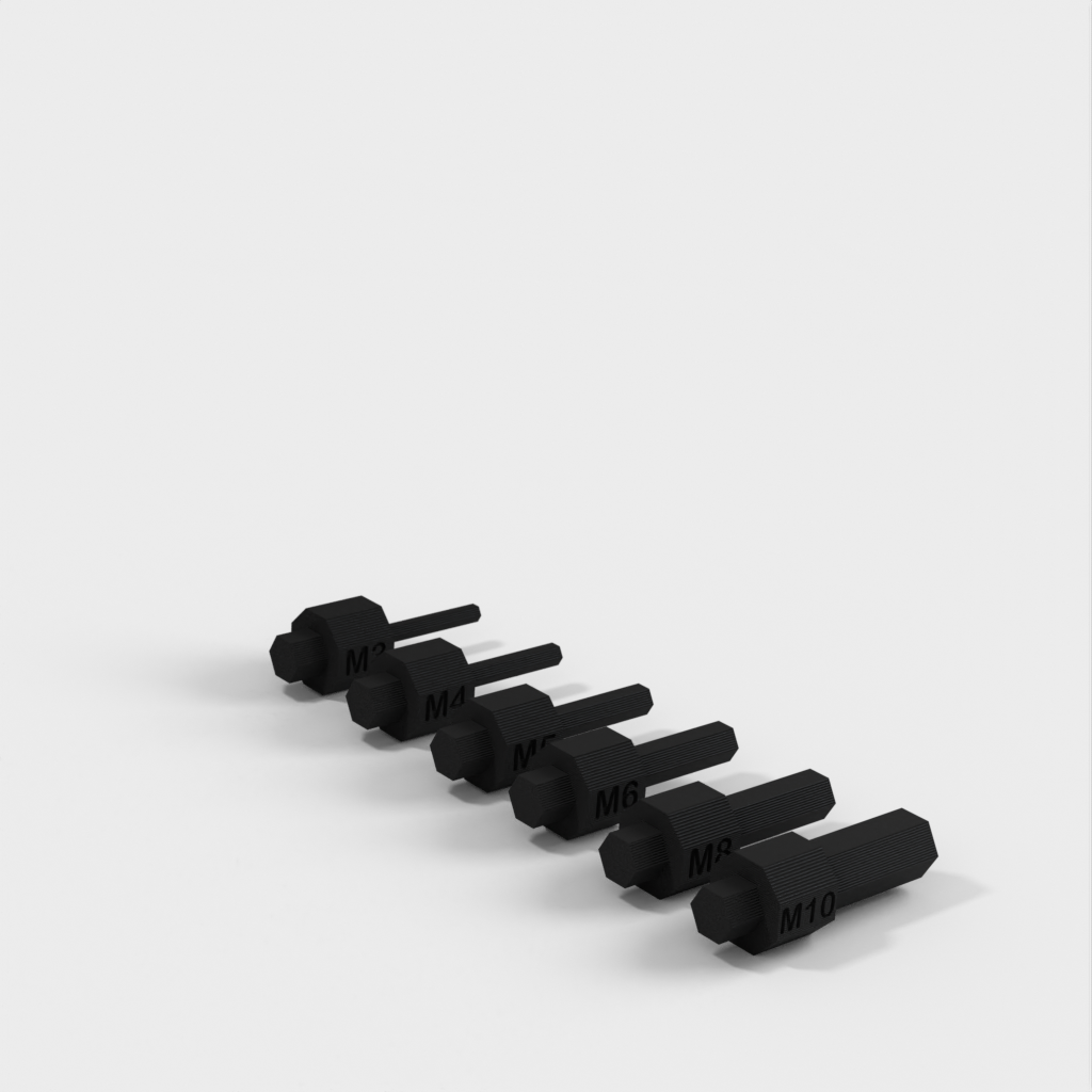 Juego de llaves Allen hexagonales, OMT², en tamaños métricos de M3 a M10. Este juego es compatible con cualquier portapuntas estándar y/o mango OMT². El juego contiene las 6 llaves Allen más utilizadas. Las ventajas de este juego son que es compacto, fácil de guardar y de utilizar. El juego es útil en muchas situaciones en las que pueda necesitar una llave Allen. Tenga en cuenta que este juego nunca sustituirá completamente a un juego de llaves Allen metálicas, pero puede resultar útil en algunos casos.