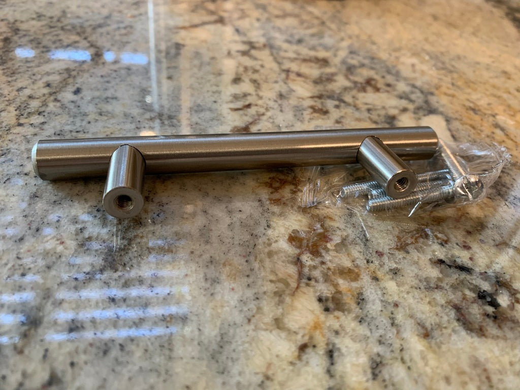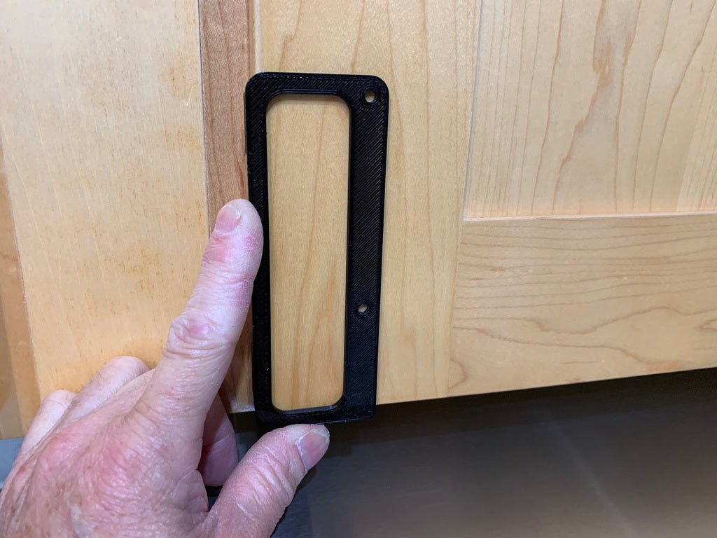 Consejo de usuario: taladre con cuidado el primer orificio para el tornillo y sujete la plantilla en su sitio insertando un tornillo a través de la plantilla y en el orificio. Utilice asas sólidas en lugar de asas huecas para obtener mejores resultados. Los mangos sólidos que utilicé los compré en Amazon.