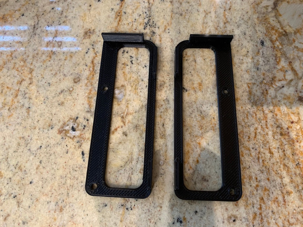 Plantillas para taladrar tiradores en armarios y cajones, diseñadas para tiradores con 2 tornillos y una distancia entre tornillos de 3'. Obtendrá una versión para zurdos y otra para diestros de la plantilla para puertas reflejando el archivo STL en su software de corte (generador de Gcode). La plantilla de cajones encaja perfectamente en los cajones superiores. Marca el centro de izquierda a derecha en un trozo de cinta adhesiva. Para los cajones superiores e inferiores, pegue un trozo de cinta adhesiva en la parte delantera del cajón para marcar el centro del cajón. Hay un agujero en el centro de la plantilla para que pueda encontrar fácilmente sus marcas.