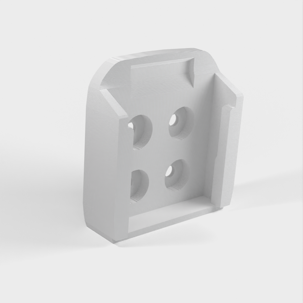 Soporte de batería Makita para una batería de 18 V. El soporte se puede montar directamente en una pared usando 4 tornillos o en una pared de placa perforada de 1 pulgada.