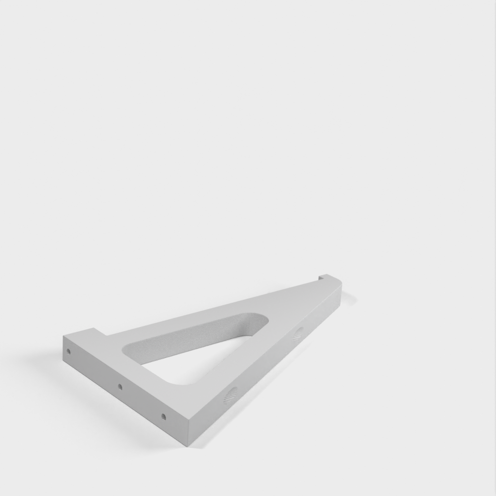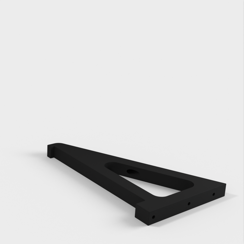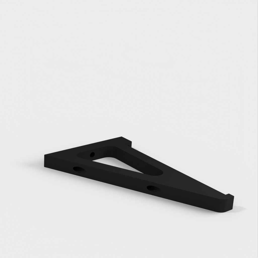 Este soporte de estantería está diseñado para adaptarse a una estantería estándar de 8 pulgadas que se encuentra en la mayoría de tiendas de bricolaje. Deja un espacio entre la estantería y la pared para el cableado. El soporte se fija a la pared con los anclajes que se muestran en la imagen. Hay tres ubicaciones por soporte.