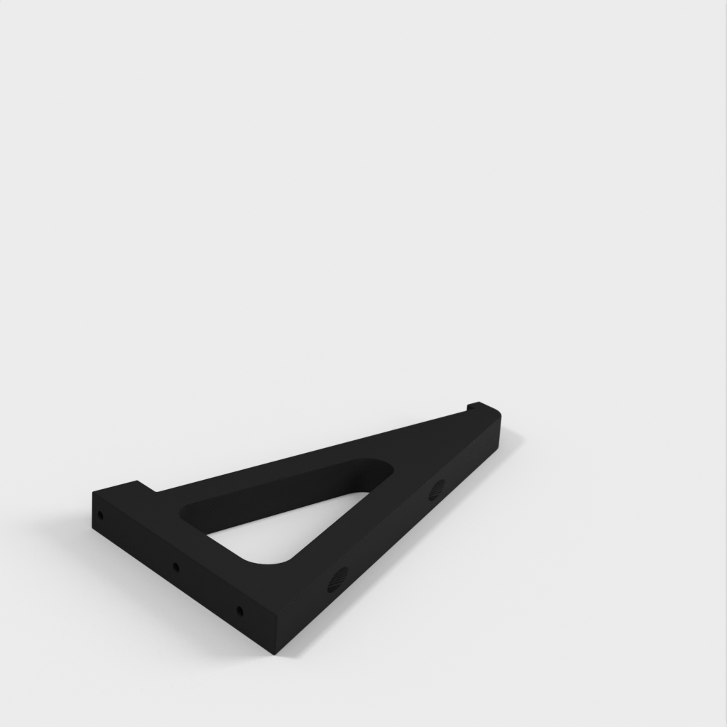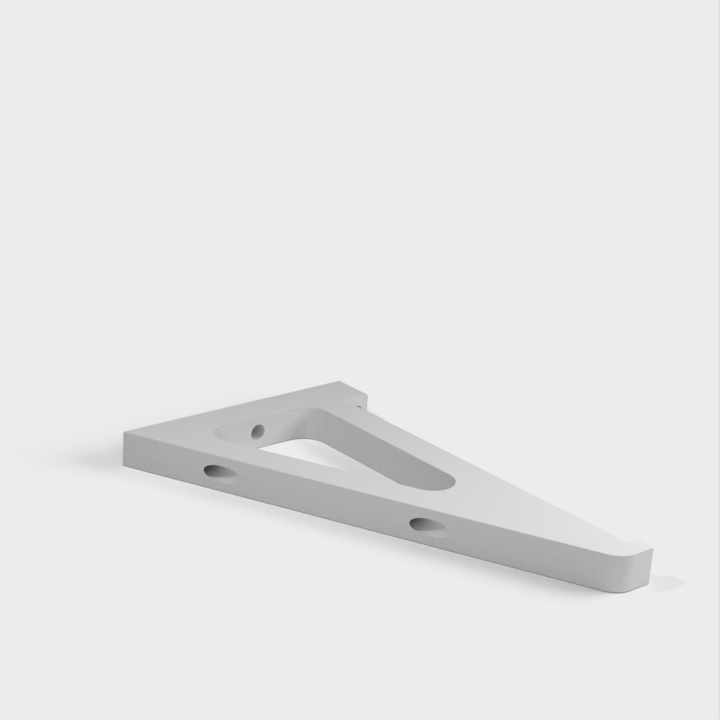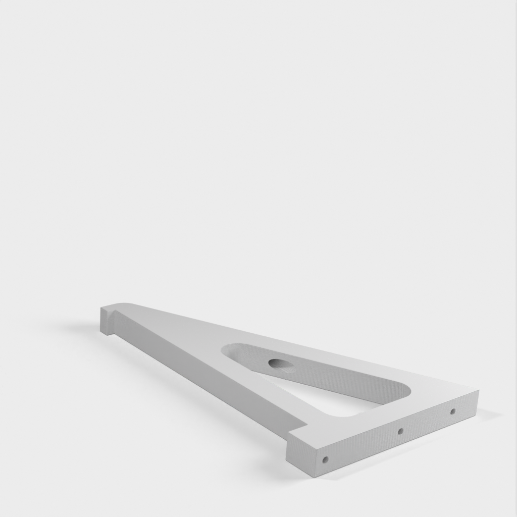 Este soporte de estantería está diseñado para adaptarse a una estantería estándar de 8 pulgadas que se encuentra en la mayoría de tiendas de bricolaje. Deja un espacio entre la estantería y la pared para el cableado. El soporte se fija a la pared con los anclajes que se muestran en la imagen. Hay tres ubicaciones por soporte.