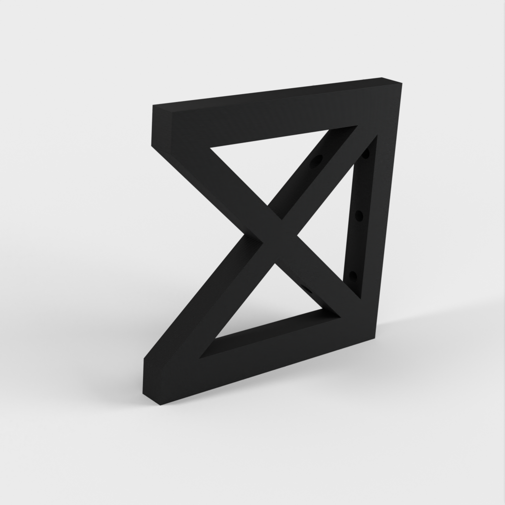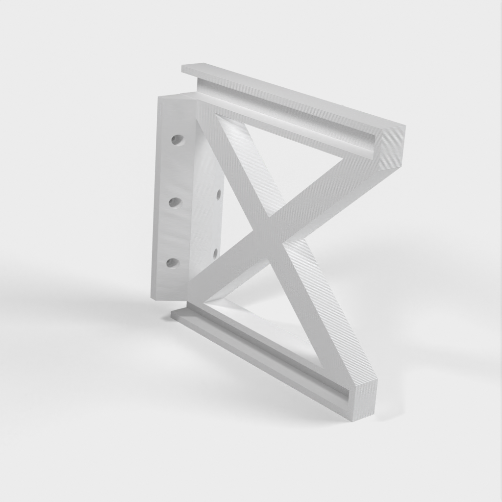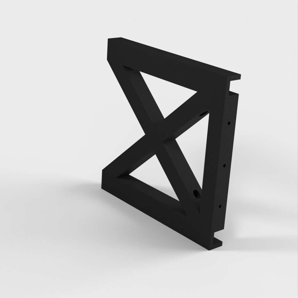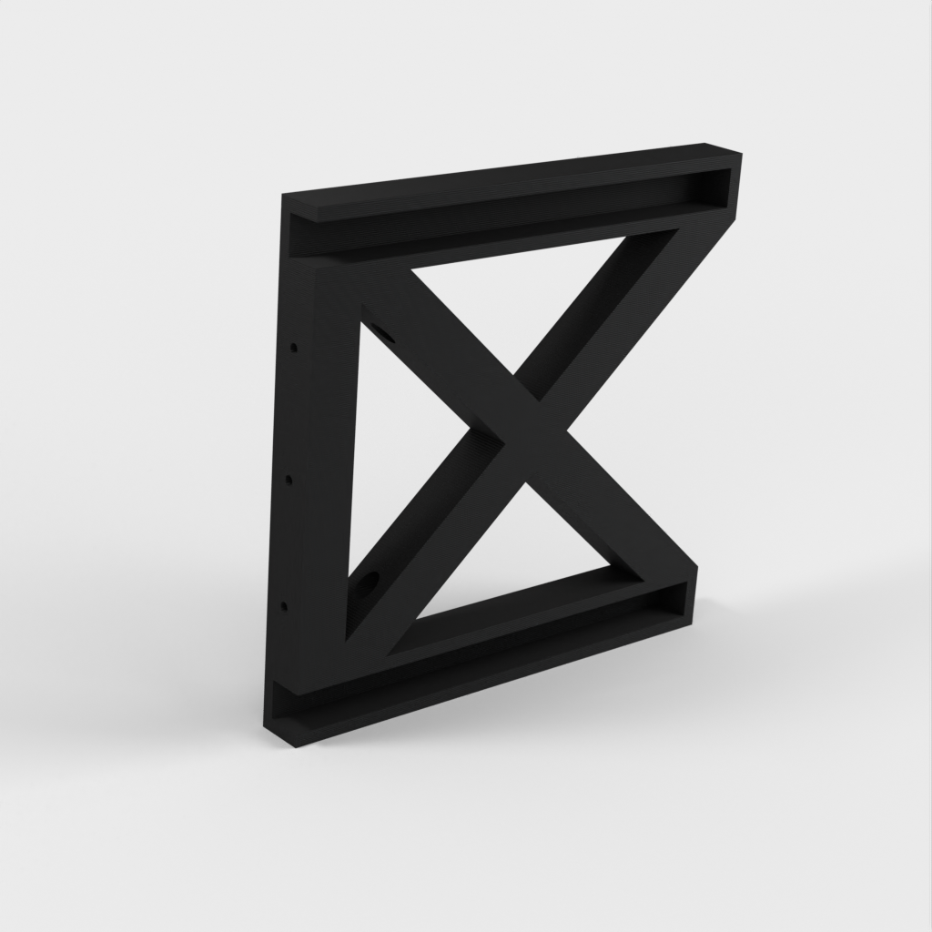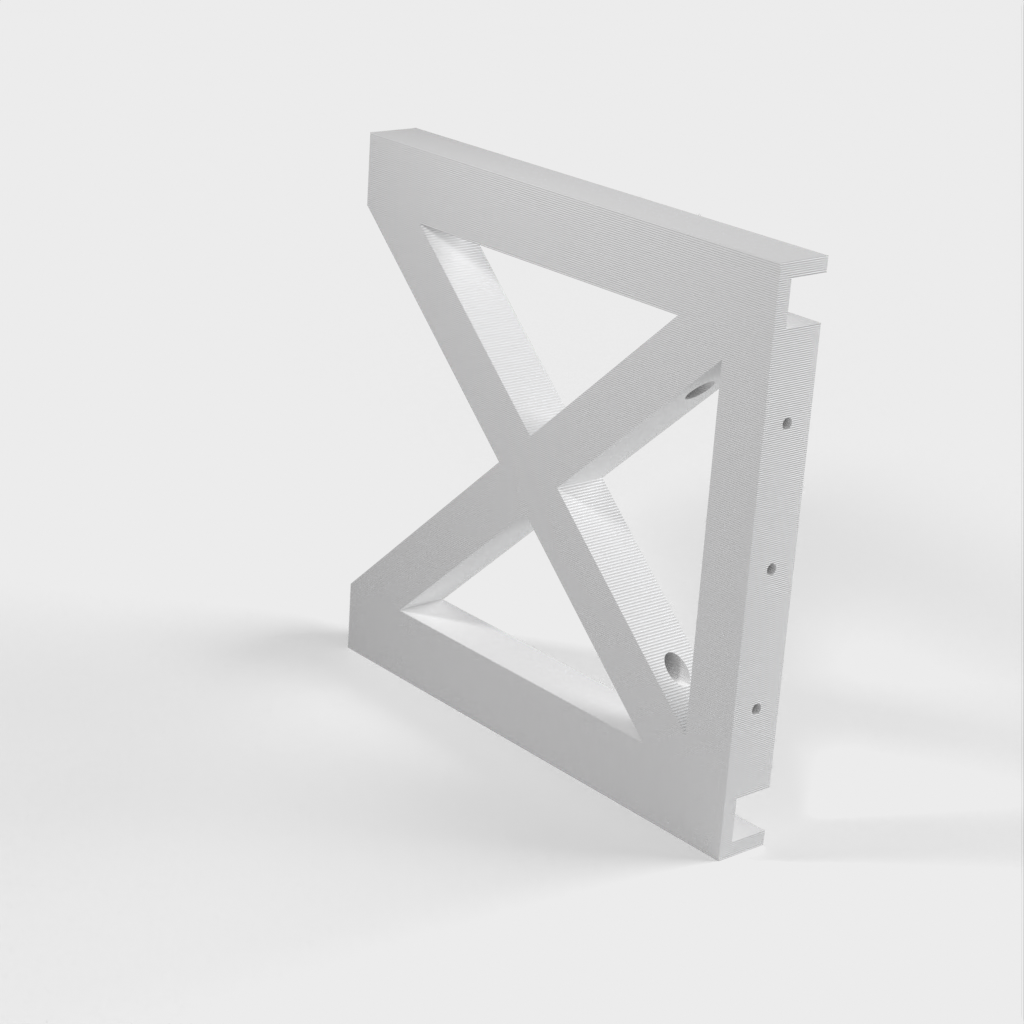 Este soporte de estantería está diseñado para adaptarse a las estanterías Burhult de Ikea, pero también se adaptará a cualquier estantería con las mismas dimensiones. Los orificios para tornillos del soporte se adaptan a tornillos con un ancho de cabeza de 8,5 mm y un ancho de rosca de 4 mm. Necesitarás tornillos de anclaje para que la estantería no se caiga de la pared. Para fabricar 4 de estos soportes, necesitas aproximadamente 1 kg de filamento. Las dimensiones de los soportes son 200,5 mm x 196,85 mm x 20,25 mm.