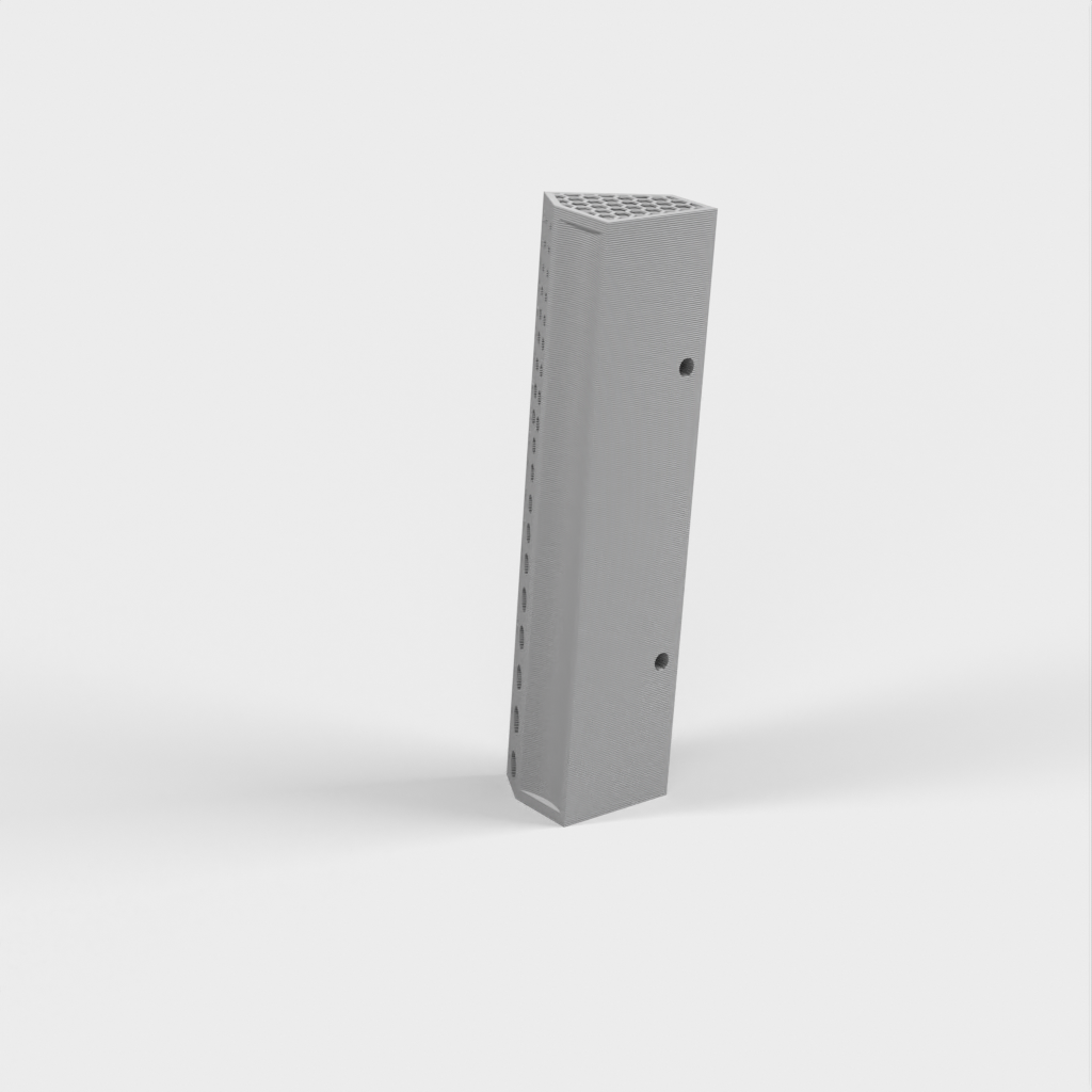 Está diseñado para ser montado en una pared con dos tornillos, pero se puede personalizar para montar con pegamento (como tiras de comandos) o imanes.
