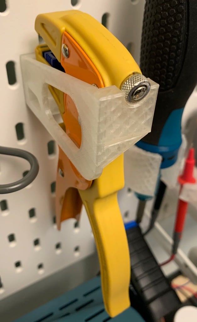 Este práctico soporte está diseñado para darle a sus alicates pelacables un lugar dedicado en su tablero de anuncios Ikea Skadis. Ayuda a mantener sus herramientas organizadas y de fácil acceso, lo cual es esencial para un espacio de trabajo eficiente y ordenado. Cuando sus alicates pelacables tienen su lugar fijo, evita buscarlos y puede concentrarse en su trabajo con los cables.