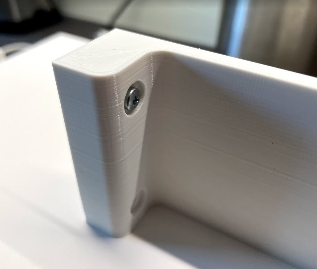 Este es un soporte impreso en 3D para montar un altavoz activo Ikea Symfonisk en la parte inferior de un armario de cocina. Está diseñado para usarse con tornillos de 3x25 mm. Las dimensiones del soporte aseguran que las patas de goma incorporadas del altavoz se presionen ligeramente contra el armario, lo que asegura un montaje estable.