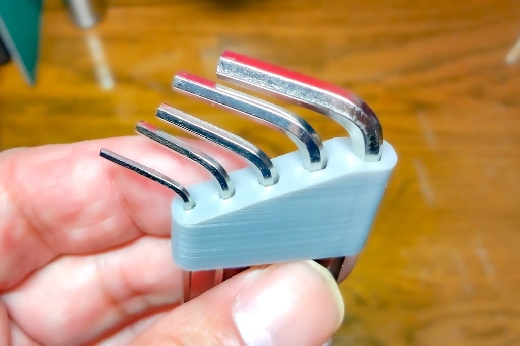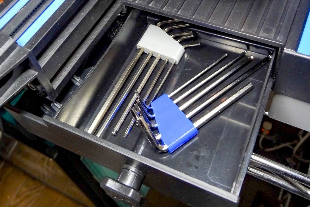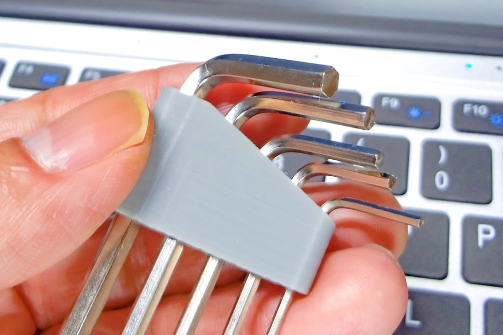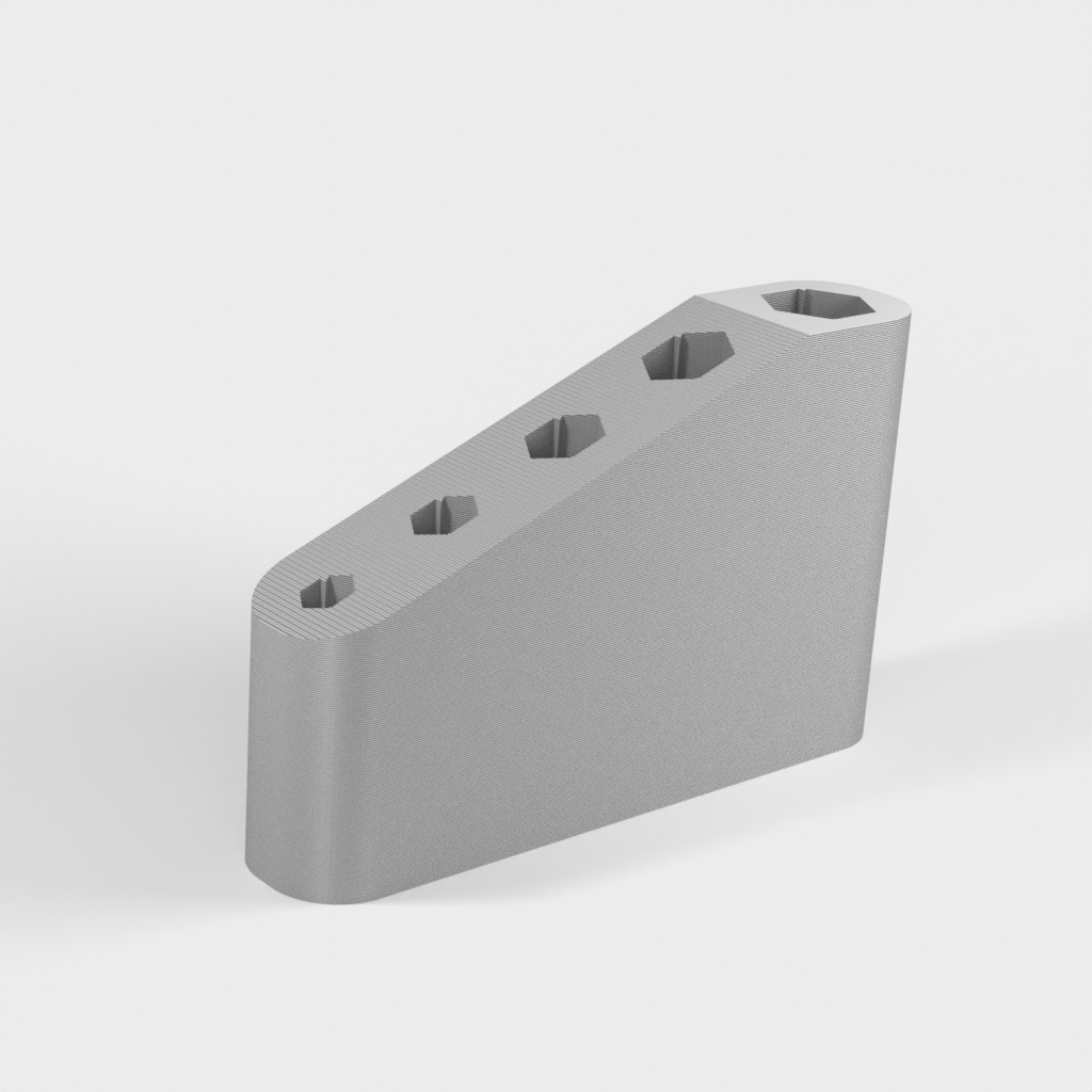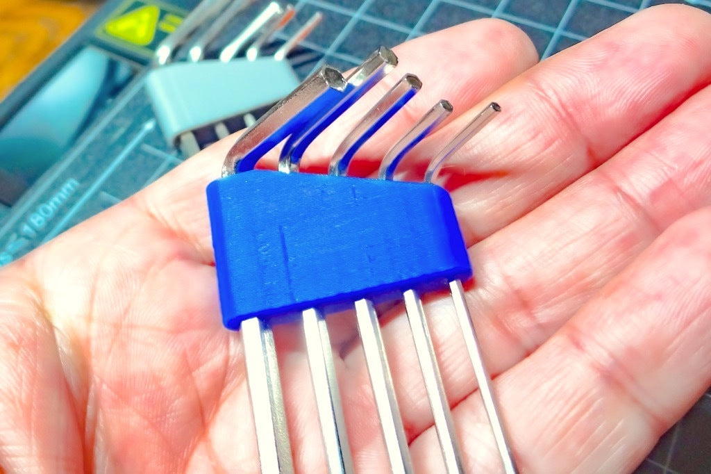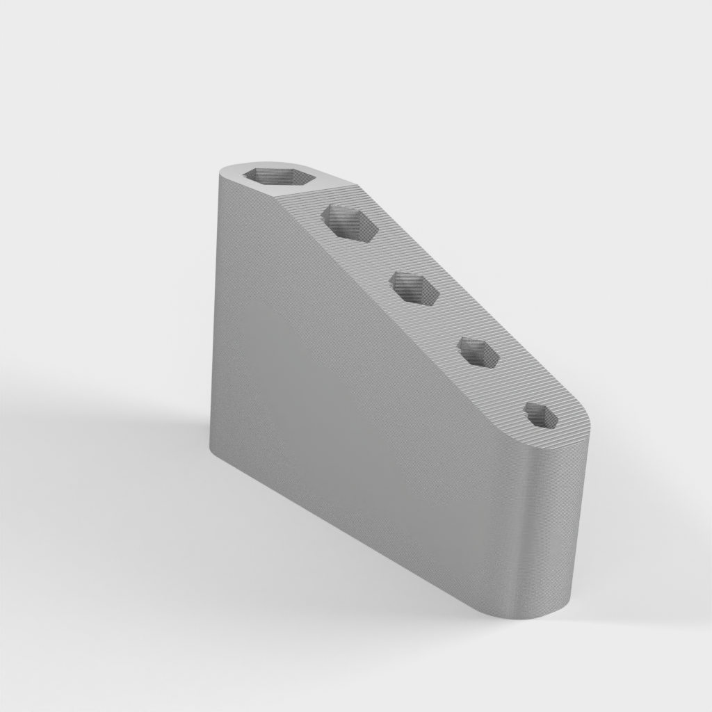 Soporte para llave hexagonal sencillo y compacto. Este pequeño soporte para llave hexagonal puede almacenar un total de 5 llaves hexagonales (1,5 mm / 2,0 mm / 2,5 mm / 3,0 mm / 4,0 mm) que se incluyen con una impresora 3D general. Es compatible con Ender3 V2, Artillery Genius, Kingroon KP3S, etc.