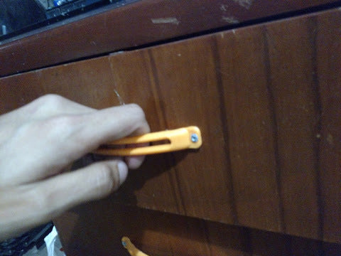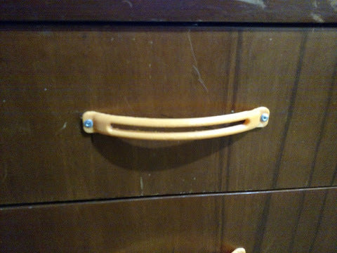Simple tirador de cajón para muebles antiguos. Este sencillo tirador se puede fijar fácilmente a tu mesa o mueble con remaches pop, permitiendo facilidad a la hora de sacar tus cajones. No necesita tornillos.