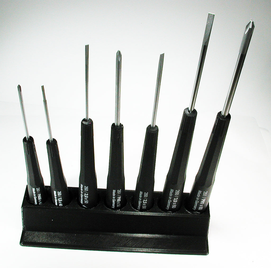 El juego de destornilladores Wiha #26197 holder es imprescindible para cualquiera que realice pequeños trabajos mecánicos. Wiha es una marca de confianza y este juego ofrece un almacenamiento organizado para sus herramientas de destornillador. El juego incluye dos mangos 'pequeños', tres 'medianos' y dos 'grandes'. Aunque la diferencia es muy pequeña, el soporte indica cuáles encajan en cada lugar. El juego se presenta en un blíster para facilitar su almacenamiento y uso. Las dimensiones básicas para la base del soporte deben ser de 2' por 6'.