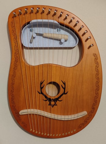 El soporte de pared para arpa lira es un colgador práctico para su arpa lira. Con este, su arpa se puede montar cómodamente en la pared y exhibirse. También puede guardar su herramienta de afinación junto con el arpa, ya que se ha optado por agregar algunas publicaciones pequeñas para este propósito. El montaje es simple y seguro con un par de pequeños orificios creados para el montaje en la pared. Perfecto para aquellos con un arpa lira de 16 cuerdas que tiene una forma y tamaño similares.