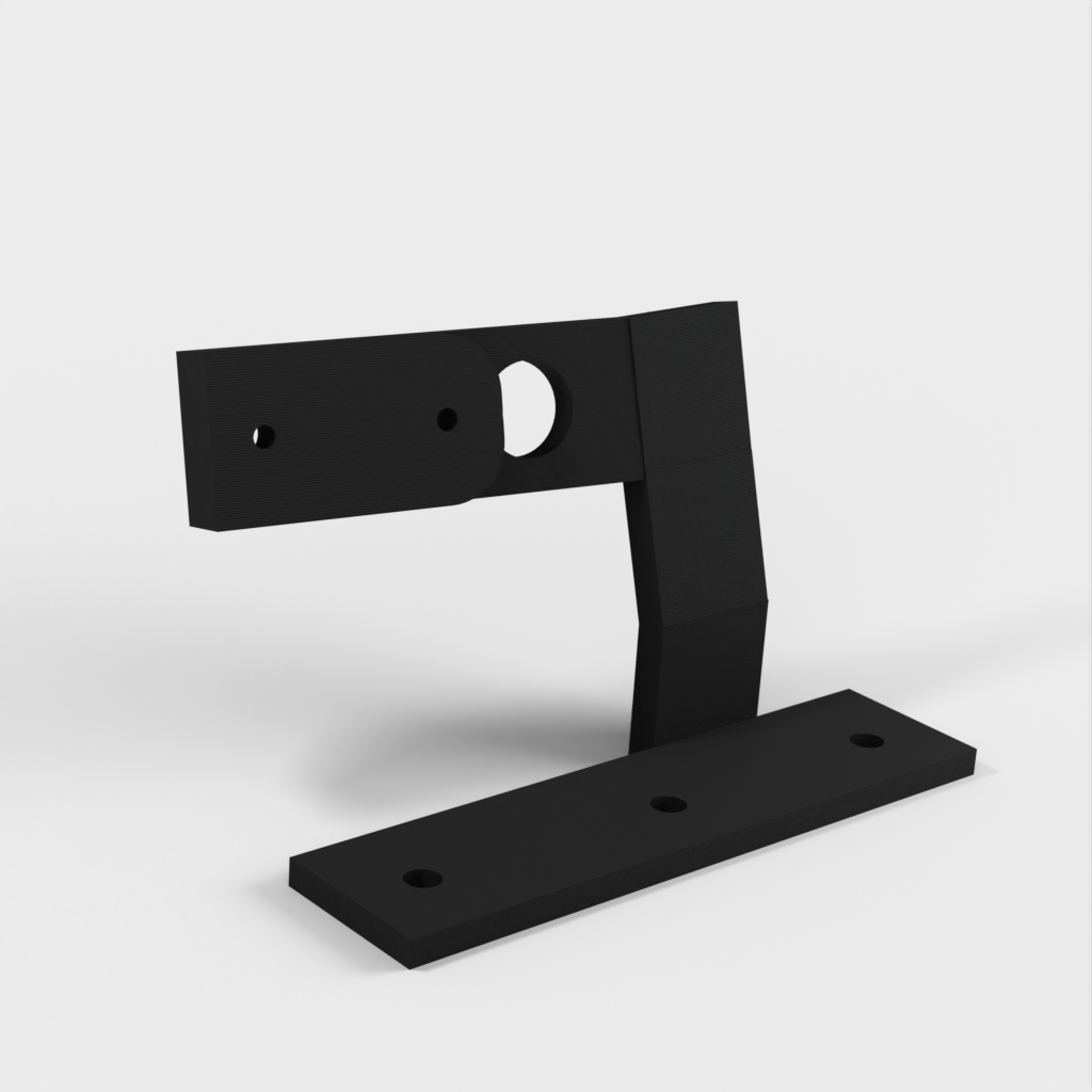 Se trata de un soporte para altavoces Logitech Z4 diseñado para ocultar todas las conexiones de cables y que se puede montar directamente en un escritorio Ikea Bekant. El soporte tiene un ángulo de 15 grados para dirigir mejor el sonido hacia el usuario.