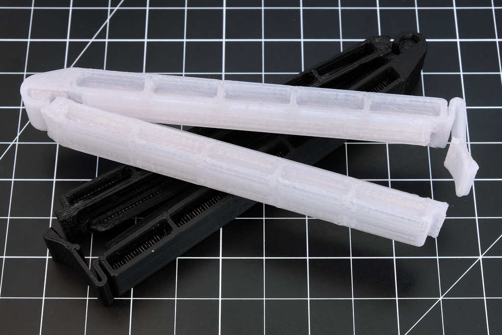 El clip para bolsas de alta resistencia es un clip para bolsas imprimible en 3D que crea un cierre casi hermético con la mayoría de las bolsas de plástico, desde bolsas de polietileno estándar de 2 milímetros hasta gruesos sacos de café multicapa. Este clip sujeta la bolsa de forma más agresiva que otros diseños y no depende de bisagras de flexión ni piezas de impresión in situ. Se proporcionan archivos STL para clips de 100 mm y 160 mm; es posible utilizar tamaños mayores. Se incluyen archivos CAD originales de Solidworks para su personalización.