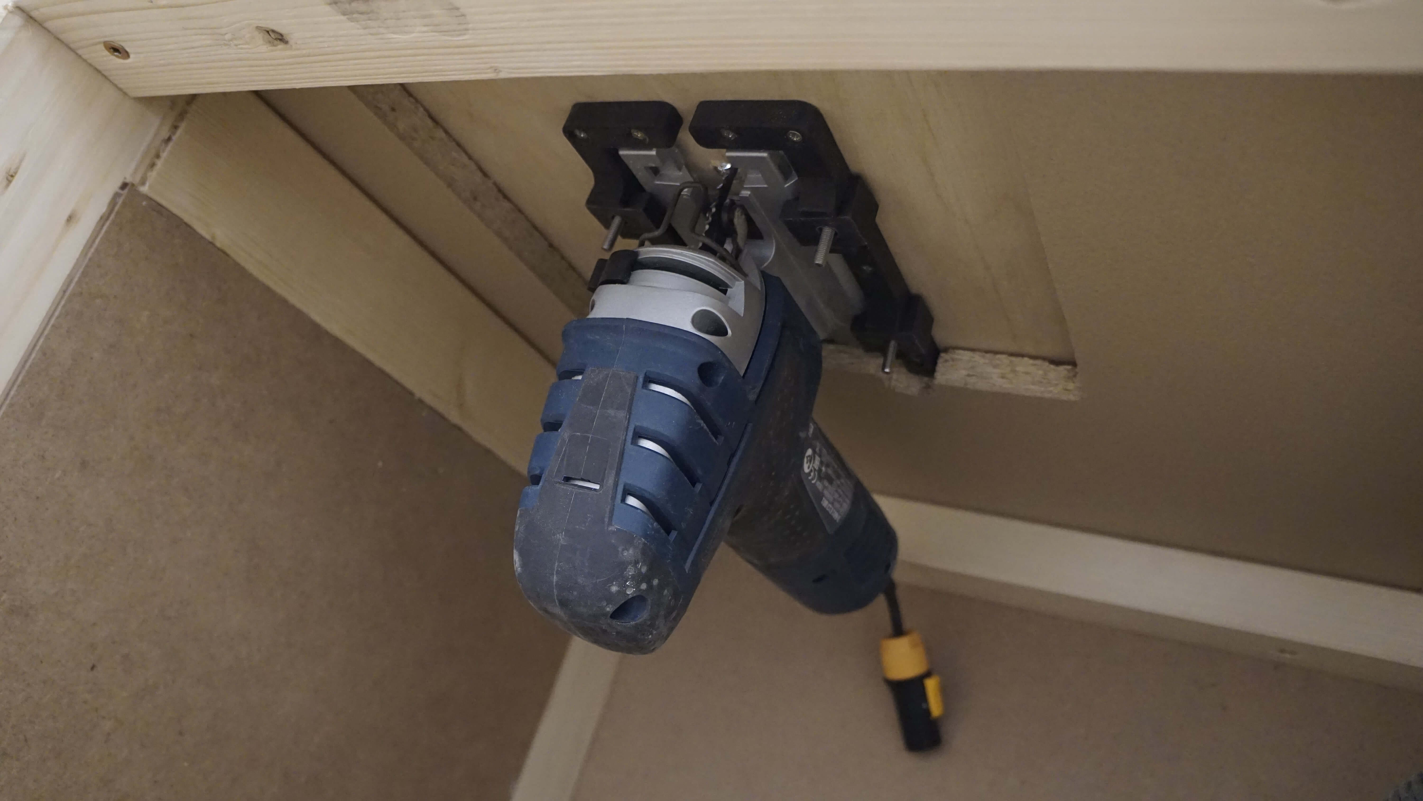 Este es un soporte de mesa para su sierra de inglete Bosch GST 150 CE que le permite transformar su sierra de inglete en una sierra de cinta o de calar. El kit de montaje consta de dos partes: un soporte izquierdo y otro derecho.
