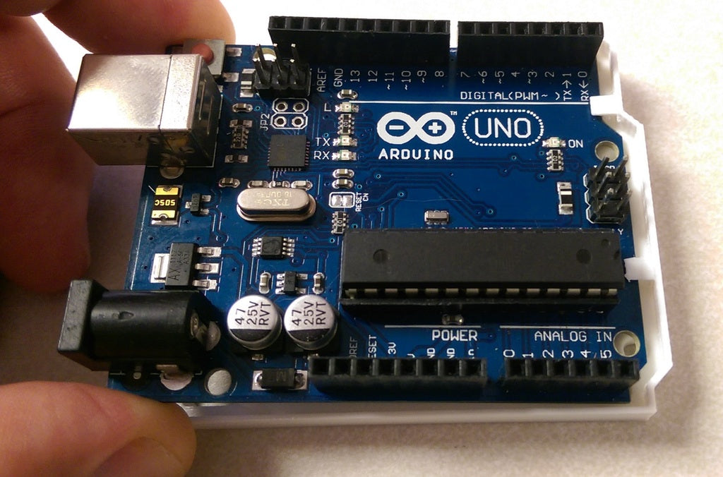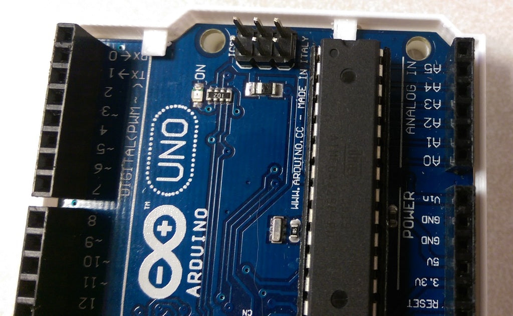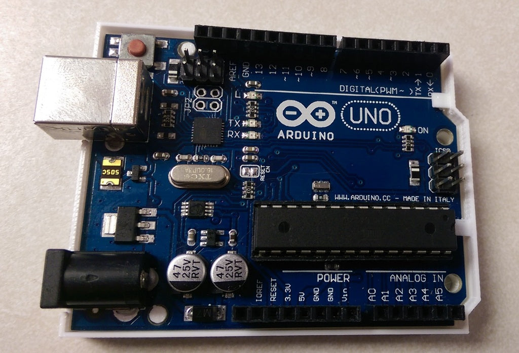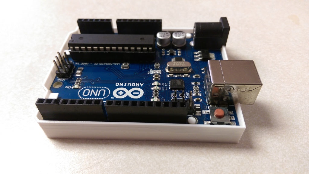 Este es un excelente primer proyecto para estudiantes y entusiastas. Puedes imprimir tu propio parachoques/mini-carcasa Arduino.