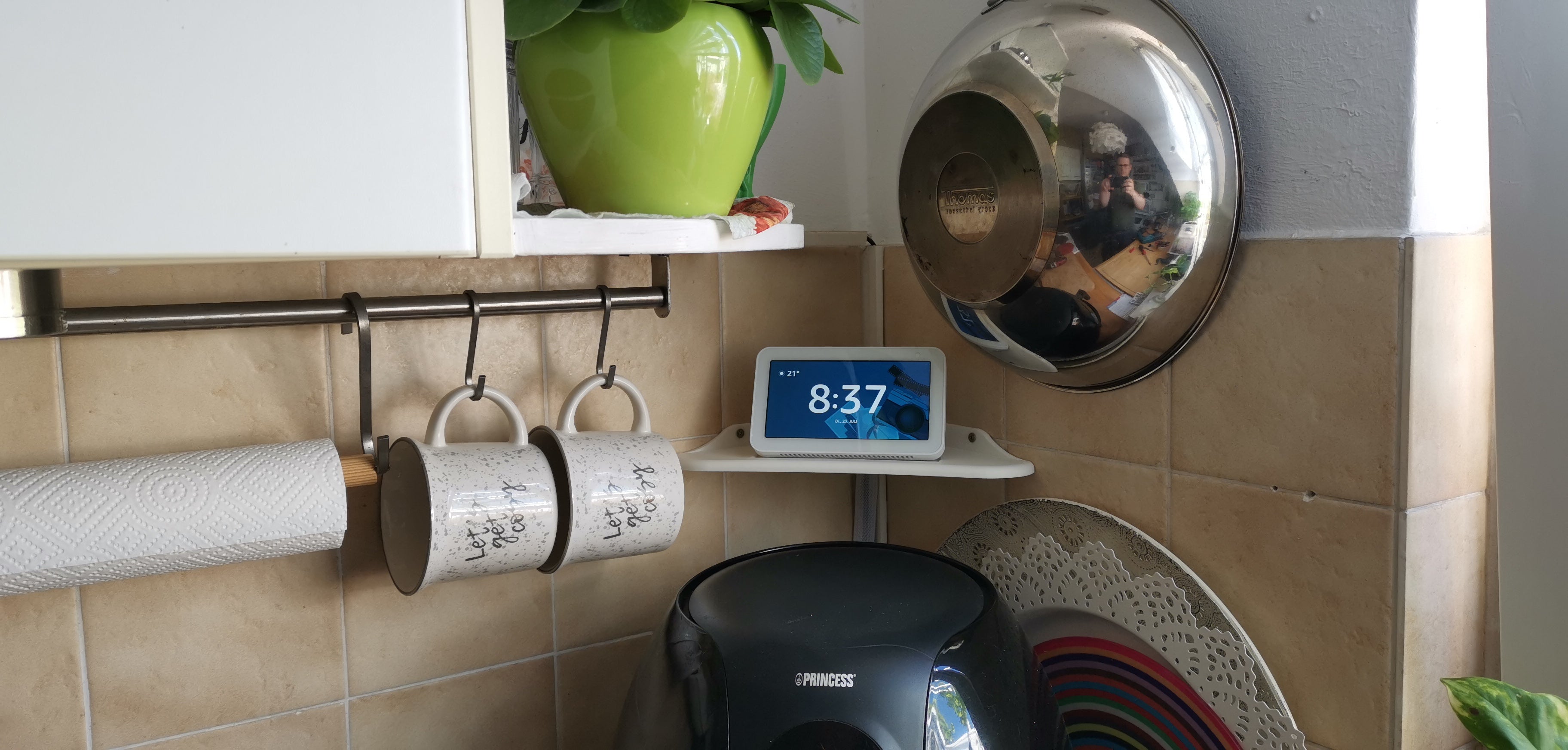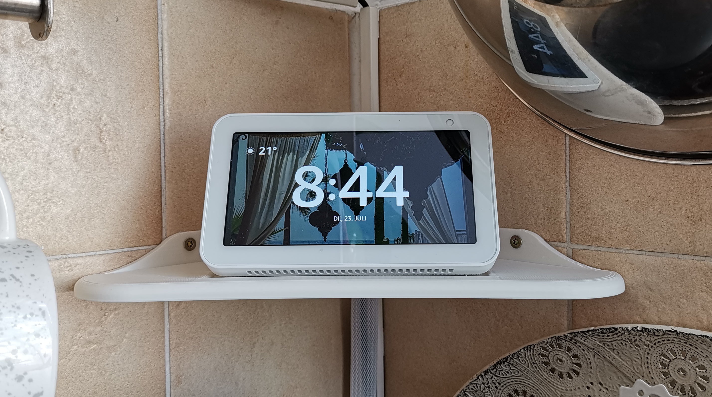 Aquí tienes un estante/soporte para Amazon Echo Show 5 diseñado para encajar perfectamente en la esquina de tu habitación. El estante tiene espacio para dos cables (alimentación y audio) y ofrece una forma inteligente y elegante de asegurar su Echo Show 5, optimizando su espacio y manteniendo los cables organizados. Incluso tiene un pequeño recorte para un tercer cable si es necesario.