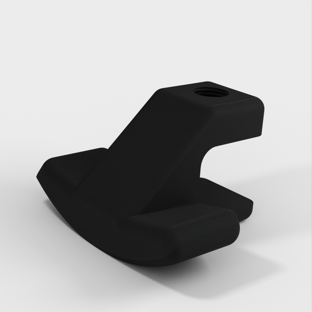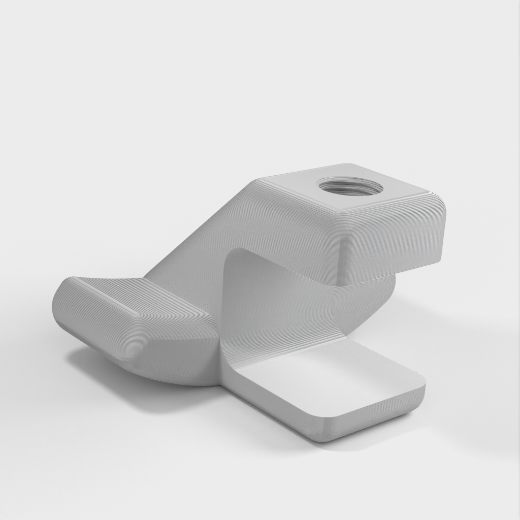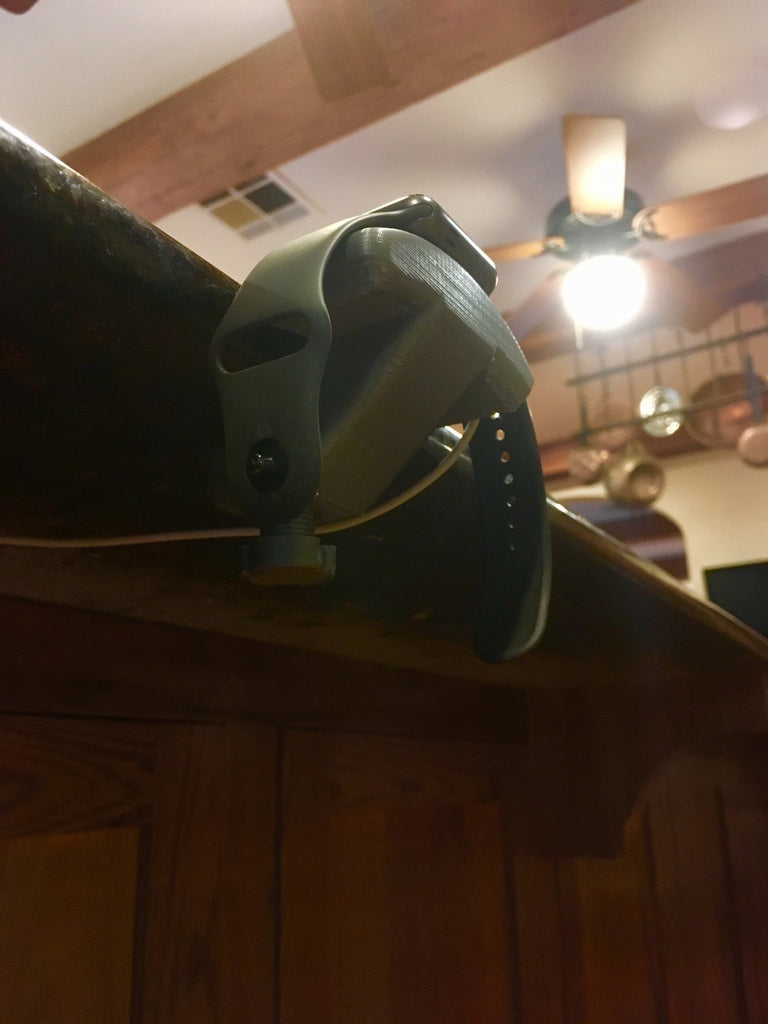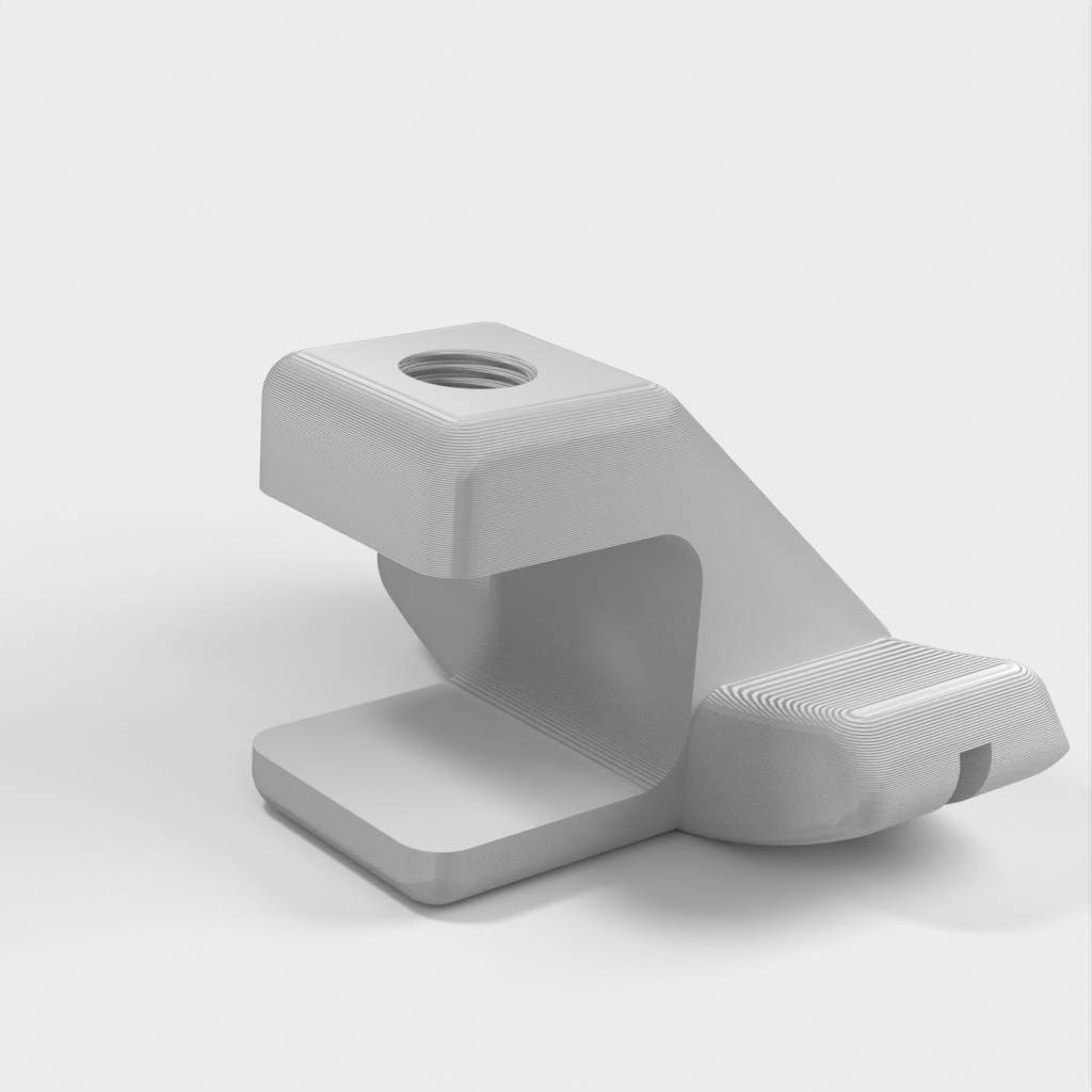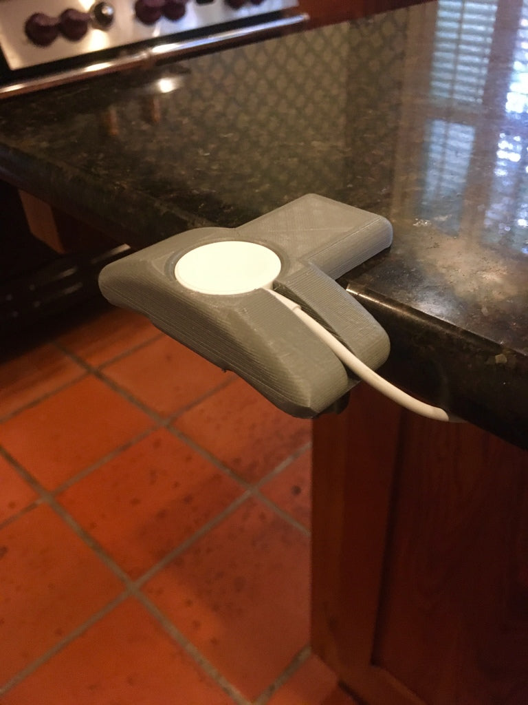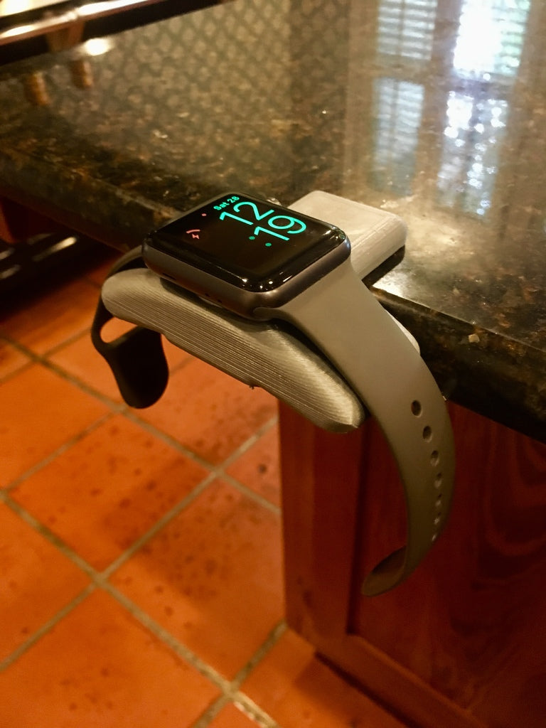 Una sencilla base de carga para Apple Watch que se engancha a la mayoría de las mesas. Funciona con todos los Apple Watch. Dispone de un canal para la salida del cable en la parte trasera debajo del reloj.