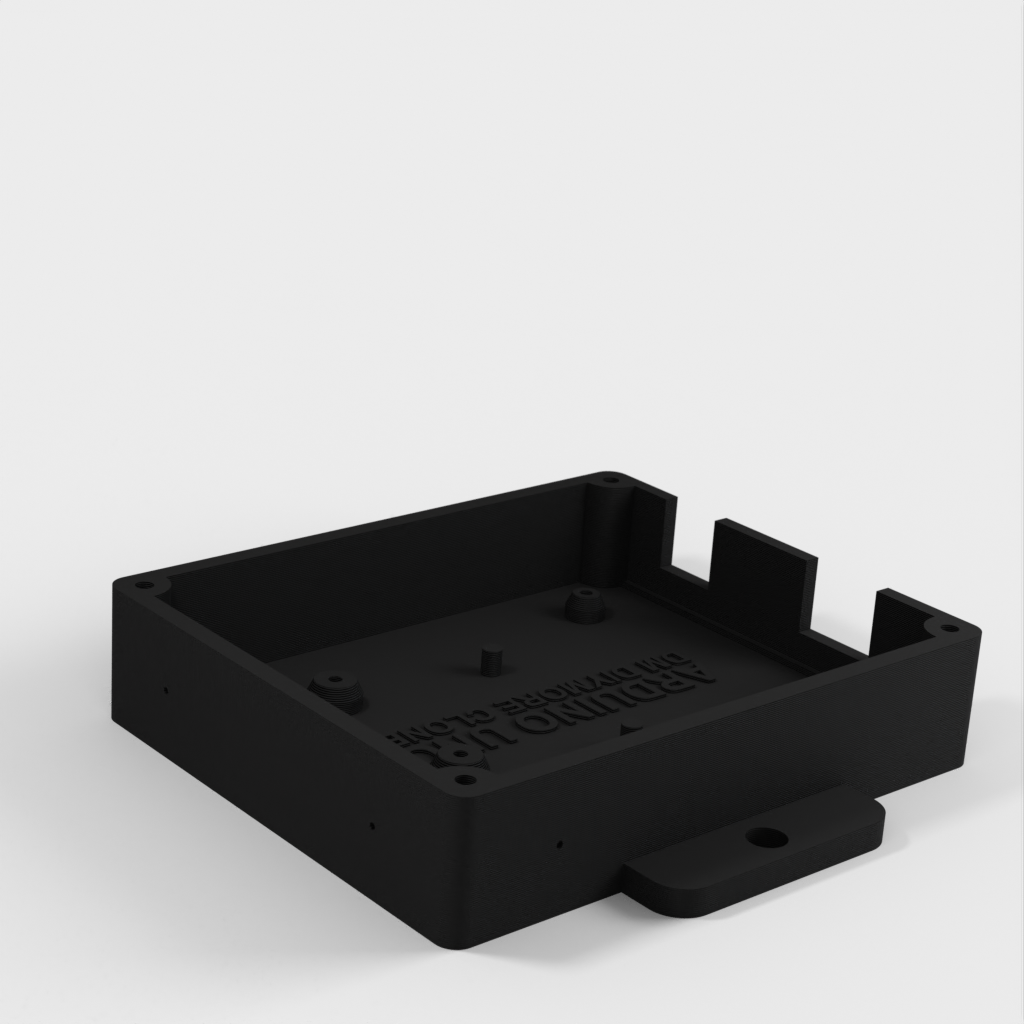Esta es una carcasa para el clon de arduino DM DIYMORE. Algunos modelos de arduino pueden ser ligeramente diferentes en tamaño y ubicación de los conectores